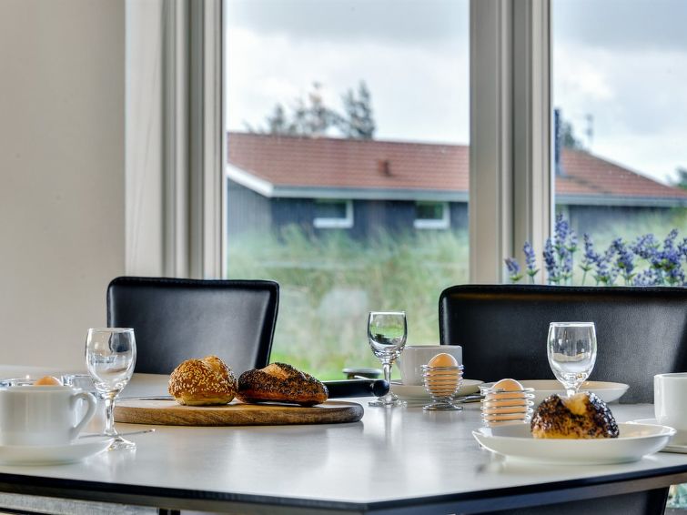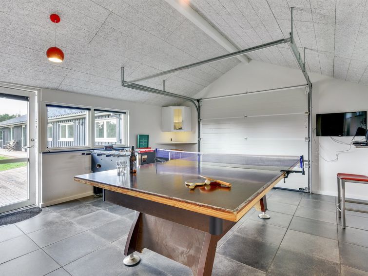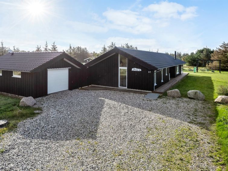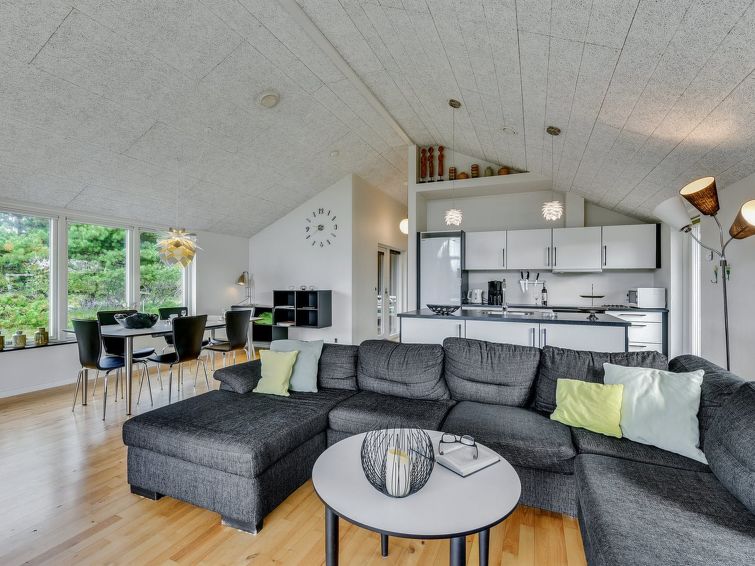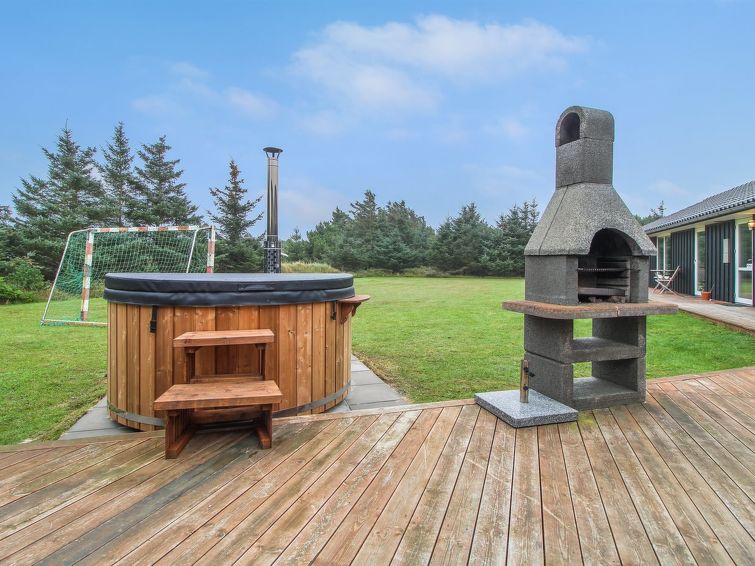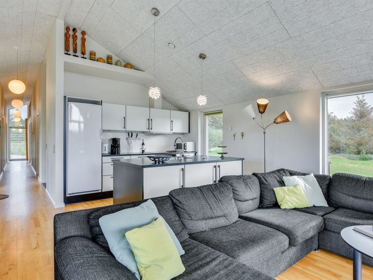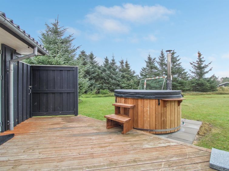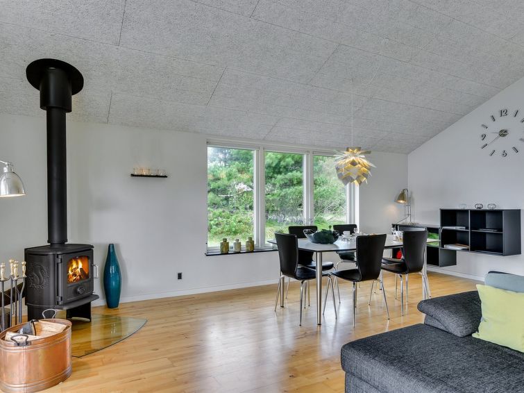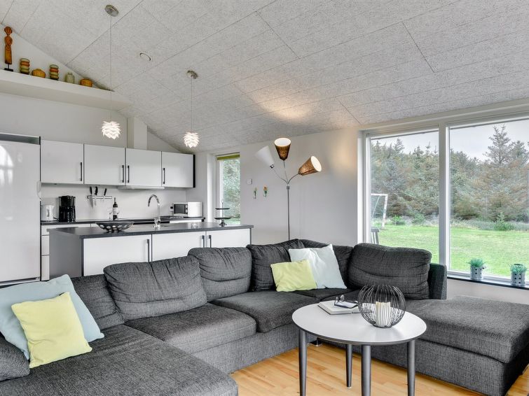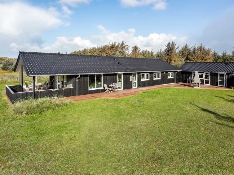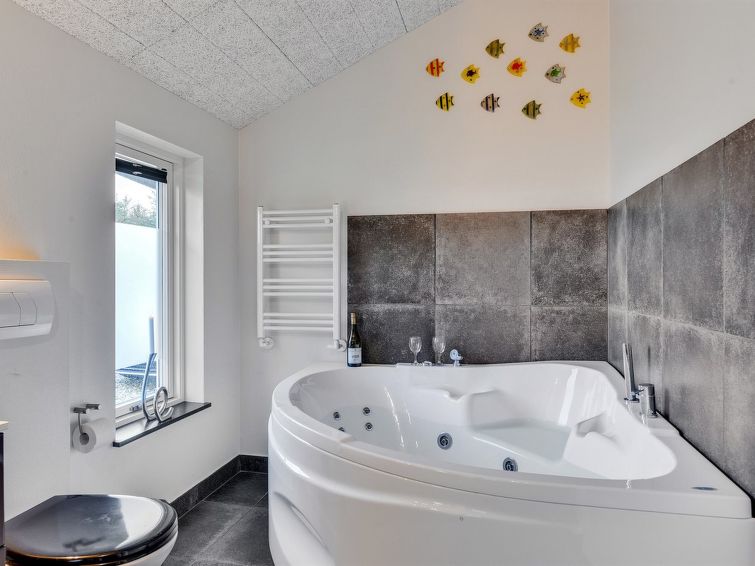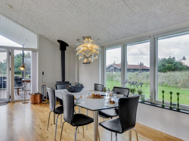 "Faye" - 600m from the sea in Western Jutland", 3 rom hus 120 m2. Passer for 8 voksne + 1 barn. Stue med, TV, CD-spiller, stereoanlegg og DVD. 1 rom med 2 senger. 1 rom med, 1 dobbeltseng. Åpen galleri, 1 rom med, 1 dobbeltseng og 2 sovemuligheter. Kjøkken (stekeovn, oppvaskmaskin, 4 keramiske kokeplater, mikrobølgeovn, frys). 3 dusjer/WC, boblebad. Terrasse 40 m2, dekt. Fasiliteter: høy barnestol barneseng (ekstra). Internett (trådløs LAN [WLAN]). Vennligst merk: røykfri bolig.