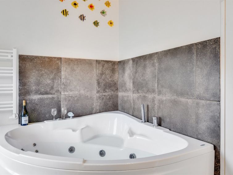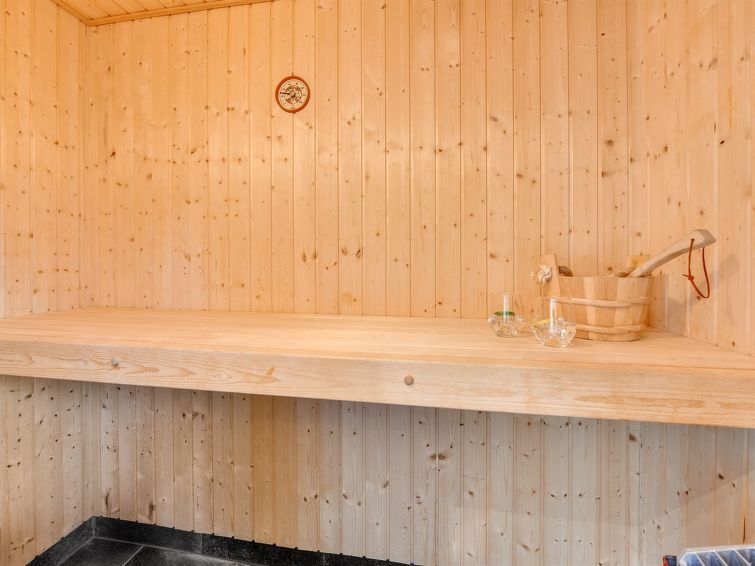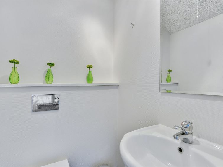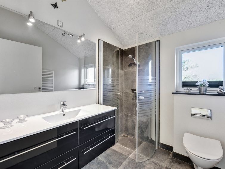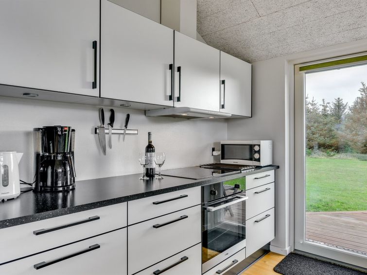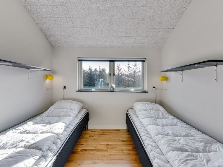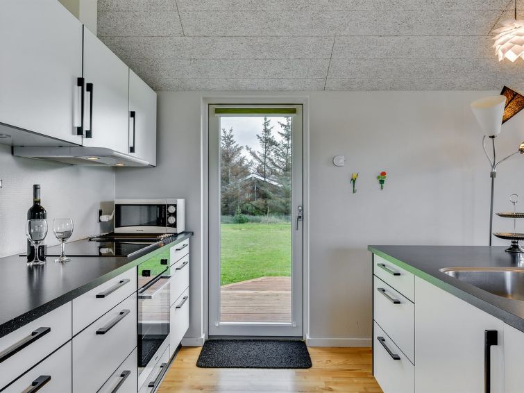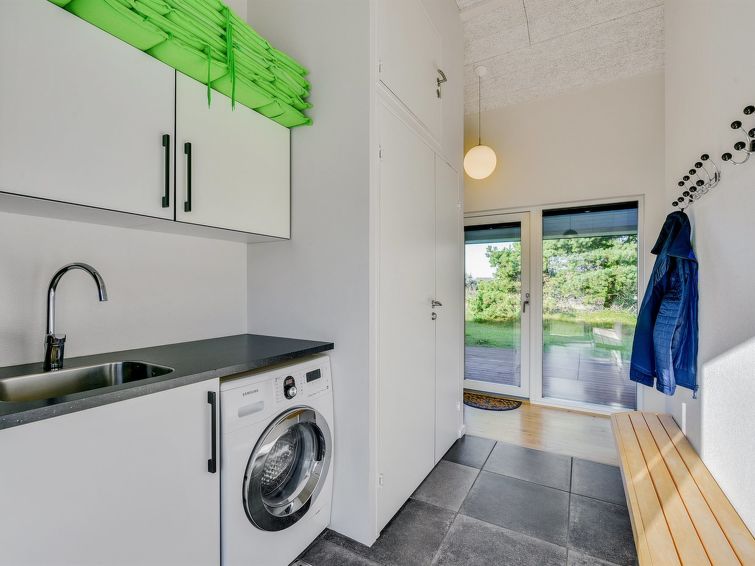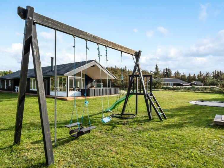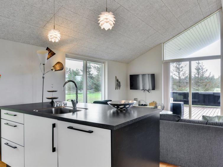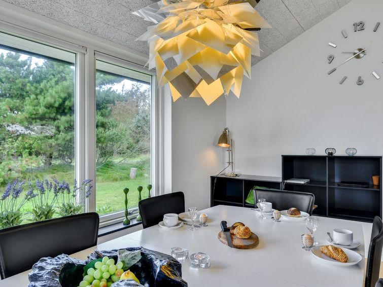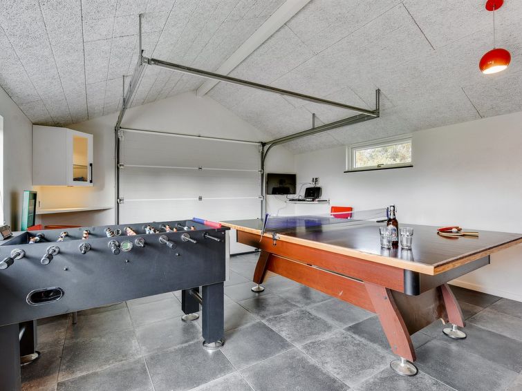 "Faye" - 600m from the sea in Western Jutland", 3 rom hus 120 m2. Passer for 8 voksne + 1 barn. Stue med, TV, CD-spiller, stereoanlegg og DVD. 1 rom med 2 senger. 1 rom med, 1 dobbeltseng. Åpen galleri, 1 rom med, 1 dobbeltseng og 2 sovemuligheter. Kjøkken (stekeovn, oppvaskmaskin, 4 keramiske kokeplater, mikrobølgeovn, frys). 3 dusjer/WC, boblebad. Terrasse 40 m2, dekt. Fasiliteter: høy barnestol barneseng (ekstra). Internett (trådløs LAN [WLAN]). Vennligst merk: røykfri bolig.