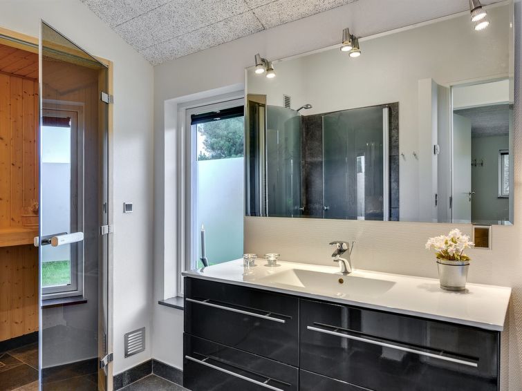 Enmannsbolig, bygget i 2013. 600 m fra sjøen. Privat: tomt 2'250 m2. Utendørs dusj, terrasse (90 m2), grill, grillplass, lekeplass (rutsjebane, huske). I huset: badstu, fotballsbord, trikkpolinje, vaskemaskin, tørketrommel. Parkering ved hbrukt. Daglivarehandel 1.5 km. Eieren godtar ikke noen ungdomsgrupper.
