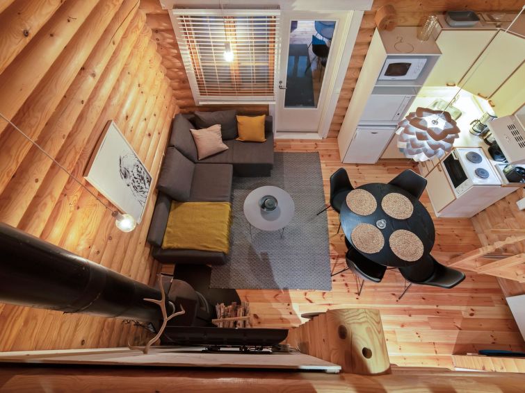 Livingroom/kitchen, bedroom with double bed, loft (16 m², low room height) with double bed. Also electric sauna, washing room, toilet.