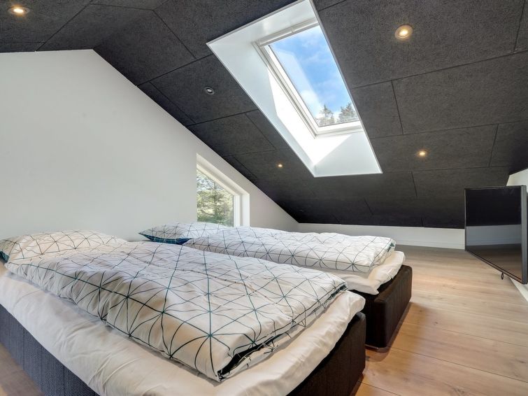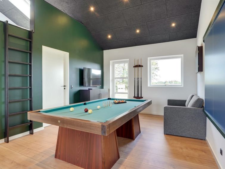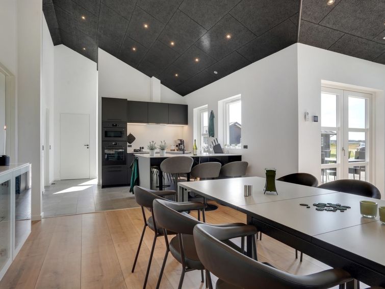 "Ferit" - 1.5km from the sea in NW Jutland", 4 rom hus 150 m2. Passer for 10 voksne + 1 barn. Stue med, 1 dobbel sovesoffa, TV og radio. 1 rom med, 1 dobbeltseng. 1 rom med, 1 dobbeltseng. 1 rom med, 1 dobbeltseng. Åpen galleri, 1 rom med 1 seng. Kjøkken (stekeovn, oppvaskmaskin, 4 induksjonskomfyr, mikrobølgeovn, frys). 2 dusjer/WC. Terrasse 25 m2, dekt. Fasiliteter: høy barnestol barneseng (ekstra). Internett (trådløs LAN [WLAN]). Vennligst merk: røykfri bolig. Max kjæledyr/små hunder tillatt 2 kjæledyr/små hunder tillatt.