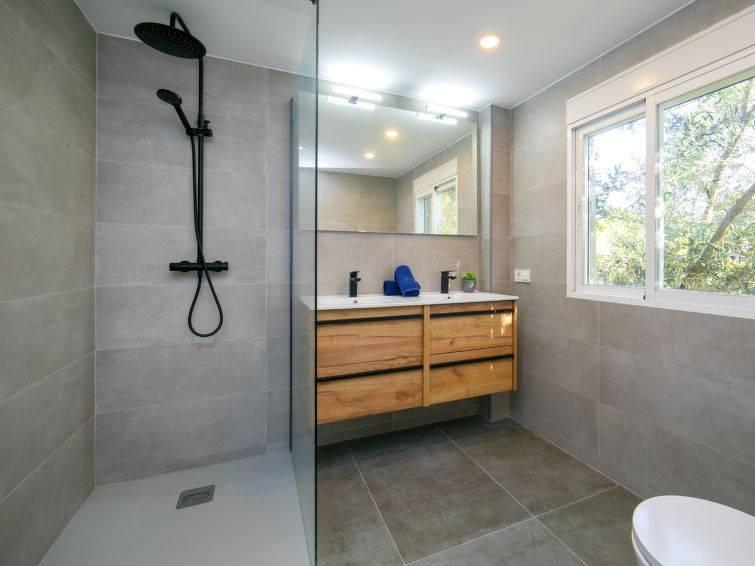 "Finca La Vale", 5 rom villa 160 m2 på 2 etasjer. Romlig og lys, komfortabelt og vakkert møbler: åpen stue/spisestue med, 1 sovesoffa (160 cm, lengde 200 cm), satelit-TV, air-conditioning og varmluft oppvarming. 1 rom med, 1 dobbeltseng (1 x 160 cm, lengde 200 cm), air-conditioning og varmluft oppvarming. 1 rom med, 1 dobbeltseng (1 x 150 cm, lengde 190 cm), air-conditioning og varmluft oppvarming. Åpent kjøkken (ovn, oppvaskmaskin, 5 keramiske kokeplater, brødrister, vannkoker, mikrobølgeovn, elektrisk kaffemaskin). Dusj/bidé/WC, sep. WC. I underetasje: (utendørs trapp) åpen stue/spisestue med, satelit-TV, air-conditioning og varmluft oppvarming. 1 rom med 2 senger (80 cm lengde 190 cm), air-conditioning og varmluft oppvarming. Lite, åpent kjøkken (ovn, oppvaskmaskin, 4 keramiske kokeplater, brødrister, mikrobølgeovn, elektrisk kaffemaskin). Dusj/bidé/WC. Stor terrasse. Terrassemøbler, grill (flyttbar), liggestoler. Delvis utsikt av havet og dalen. Fasiliteter: vaskemaskin, strykejern, høy barnestol barneseng for barn opp til 2 år, hårføner. Internett (trådløs LAN [WLAN], gratis). Parkeringsplass (overdekt). Velegnet for familier. R000000001