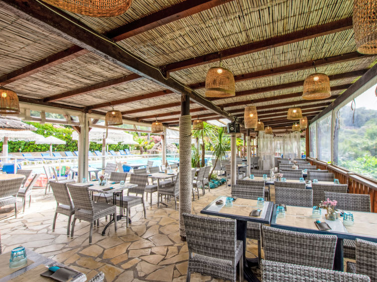 Olmucciu 8 km fra Pinarellu: Liten, koselig resort "Fium del Cavu". 25 hus i residensen. I området Olmucciu 8 km fra sentrum av Pinarellu, 16 km fra sentrum av Porto Vecchio, 131 km fra sentrum av Bastia, i en solrikt posisjon ved en høyde, 500 m fra sjøen, 500 m fra stranden, 500 m fra elven, i en blindvei, i det grønne. Fellesbruk: vakker hage i flere nivåer med planter og trær, eng, 1 badebasseng inngjerdet (16 x 8 m, Sesongåpent: 14.Mai. - 28.Okt.). Utendørs dusj, terrasse. I anlegget: resepsjon, restaurant, bar, trådløst LAN [WLAN], biljard. Parkering på tomten. Butikk 5 km, supermarked 16 km, sandstrand "Plage de l'Ovu Santu" 500 m. Tennis 250 m. Vennligst merk: bil anbefales. Bildet er et eksempel.