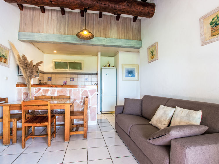 "Fium del Cavu (PIN192)", 3 rom bungalow 50 m2. Praktiskt møbler: stue/soverom med, spisebord og vifte. 2 rom, hvert rom med 1 seng (90 cm lengde 190 cm), 1 dobbeltseng (140 cm, lengde 190 cm). Kjøkkenkrok (4 gassbrennere, brødrister, mikrobølgeovn, frys, elektrisk kaffemaskin) med, air-conditioning. Dusj, sep. WC. El-oppvarming, airconditioning. Terrasse. Terrassemøbler, grill, liggestoler (2). Vakker utsikt av hagen, landskapet og sjøen. Parkeringsplass (1 Bil). Vennligst merk: røykfri bolig. Røykvarsler. Tilbud fra en kommersiell utleier i henhold til art. 155, IV, CGI