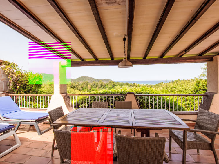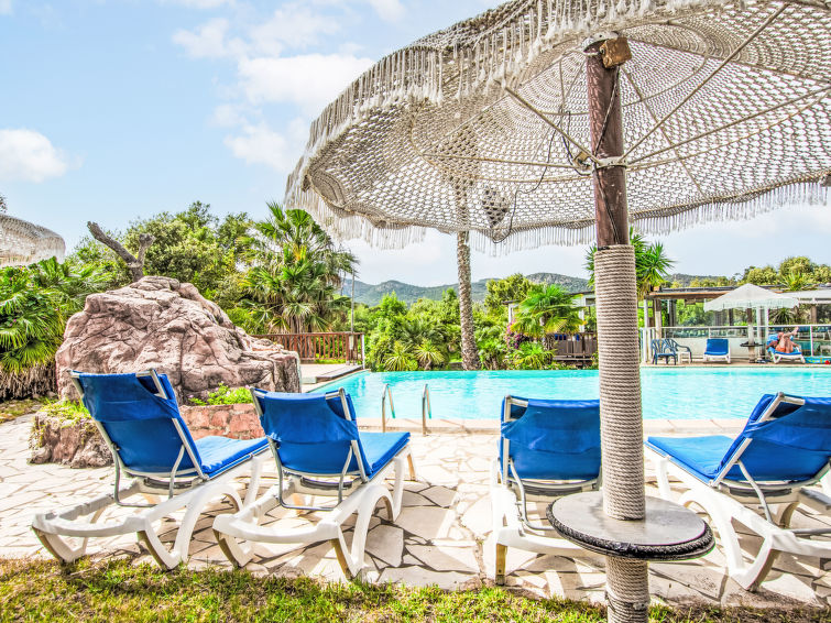 Olmucciu 8 km fra Pinarellu: Liten, koselig resort "Fium del Cavu". 25 hus i residensen. I området Olmucciu 8 km fra sentrum av Pinarellu, 16 km fra sentrum av Porto Vecchio, 131 km fra sentrum av Bastia, i en solrikt posisjon ved en høyde, 500 m fra sjøen, 500 m fra stranden, 500 m fra elven, i en blindvei, i det grønne. Fellesbruk: vakker hage i flere nivåer med planter og trær, eng, 1 badebasseng inngjerdet (16 x 8 m, Sesongåpent: 14.Mai. - 28.Okt.). Utendørs dusj, terrasse. I anlegget: resepsjon, restaurant, bar, trådløst LAN [WLAN], biljard. Parkering på tomten. Butikk 5 km, supermarked 16 km, sandstrand "Plage de l'Ovu Santu" 500 m. Tennis 250 m. Vennligst merk: bil anbefales. Bildet er et eksempel.