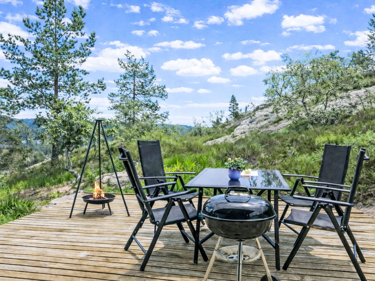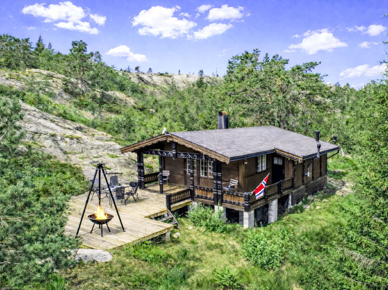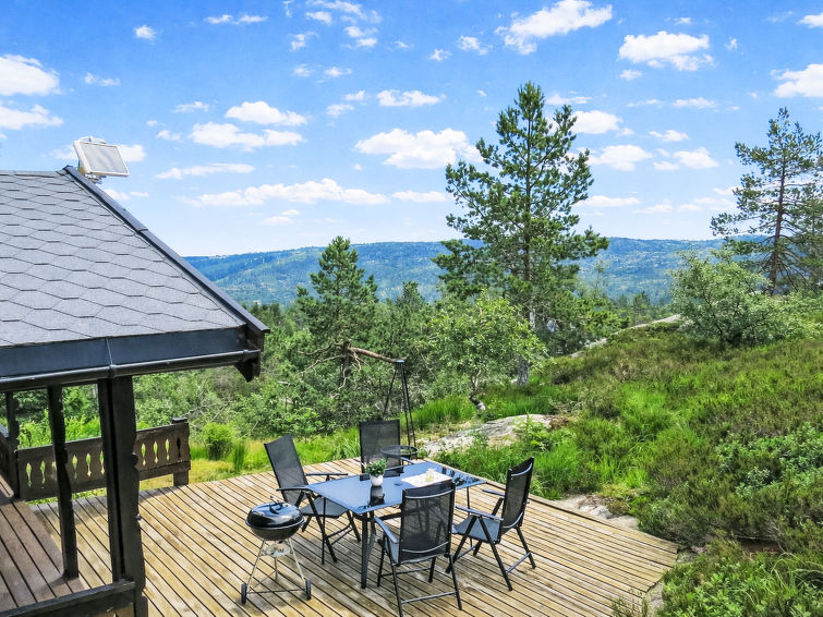 Hus "Fjellidyll", 620 m.o.h. 3 km fra sentrum av Gautefall, 14 km fra sentrum av Treungen, 71 km fra sentrum av Kragerø, 300 m fra innsjø. Privat: uberørt tomt 1'000 m2. Terrasse, hagemøbler, grill. 160 m gangsti til hbrukt. Parkering ved hbrukt i 160 m avstand. Supermarked 14 km, togstasjon "Drangedal" 29 km, ferje "Kristiansand" 143 km. Sportsfiske 600 m. Ingen rennende vann i huset. Håndkjerre for bagasjetransport.