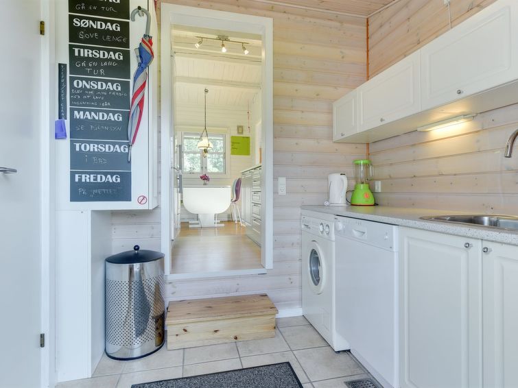 Enmannsbolig, bygget i 1966. 200 m fra sjøen. Privat: tomt 801 m2, velholdt hage. Terrasse (20 m2), lekeplass. I huset: vaskemaskin. Parkering ved hbrukt. El-ladestasjon. Daglivarehandel 500 m. Eieren godtar ikke noen ungdomsgrupper.