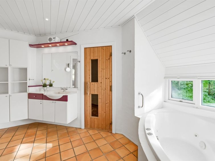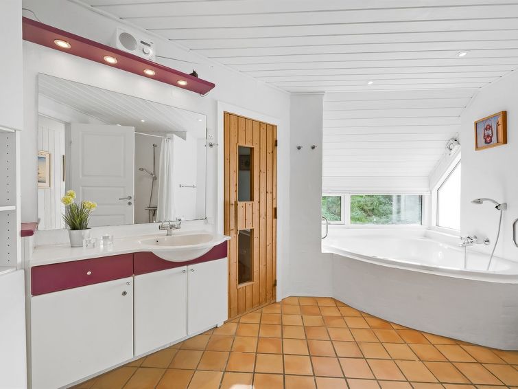 "Florencia" in Western Jutland", 4 rom hus 146 m2. Passer for 8 voksne. Stue med, TV. 1 rom med, 1 dobbeltseng. 1 rom med, 1 dobbeltseng. 1 rom med, 1 dobbeltseng. Kjøkken (stekeovn, oppvaskmaskin, 4 keramiske kokeplater, mikrobølgeovn, frys). 2 dusjer/WC, boblebad. øverste etasje: stue med, 1 dobbel sovesoffa. Fasiliteter: Internett (trådløs LAN [WLAN]). Vennligst merk: røykfri bolig.