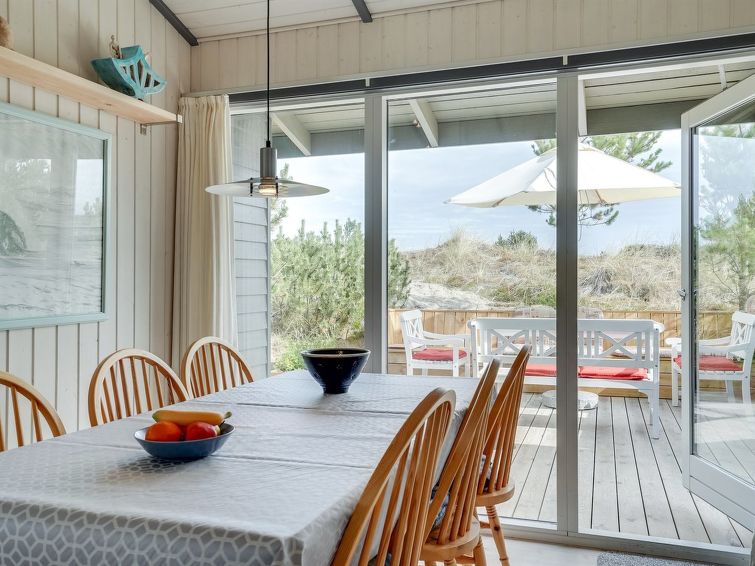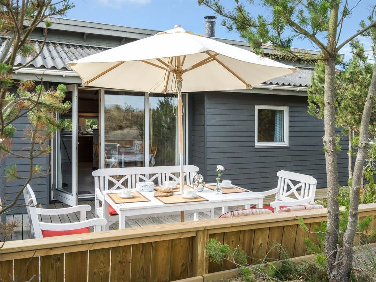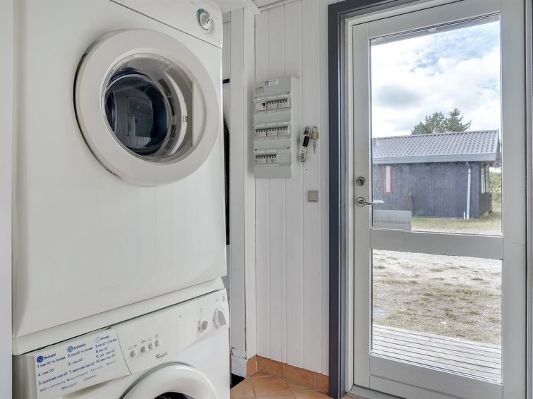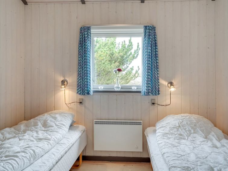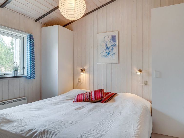 "Floria" - 1.4km from the sea in NW Jutland", 3 rom hus 88 m2. Passer for 6 voksne. Stue med, TV, radio og DVD. 1 rom med, 1 dobbeltseng. 1 rom med, 1 dobbeltseng. 1 rom med 2 senger. Kjøkken (stekeovn, oppvaskmaskin, 4 keramiske kokeplater, mikrobølgeovn, frys). Dusj/WC. Fasiliteter: høy barnestol. Internett (trådløs LAN [WLAN]). Vennligst merk: røykfri bolig. Max kjæledyr/små hunder tillatt 2 kjæledyr/små hunder tillatt.
