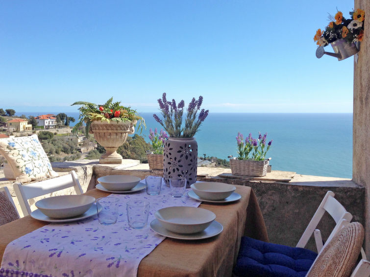 Cipressa 5 km fra San Lorenzo al Mare: Liten, rustikk rekkehus "Francesca". I området Cipressa, i utkanten, 5 km fra sentrum av San Lorenzo al Mare, 11 km fra sentrum av Imperia, 5 km fra sjøen. I huset: takterrasse. 100 m bratt gangsti til hbrukt. Offentlig parkering 100 m. Butikk 100 m, supermarked 5 km, restaurant, bussholdeplass 100 m, togstasjon "Imperia / Porto Maurizio" 11 km, sandstrand "San Lorenzo al Mare" 5 km, innendørs pool 11 km. Marina 10 km.