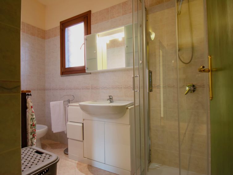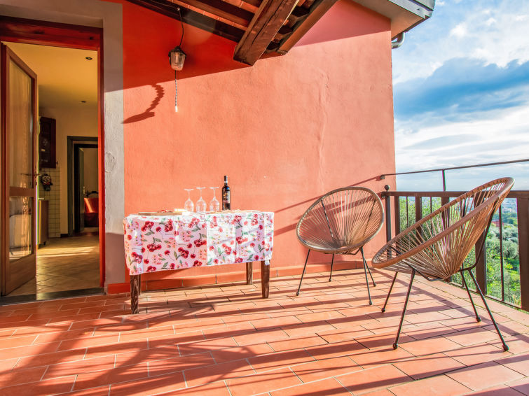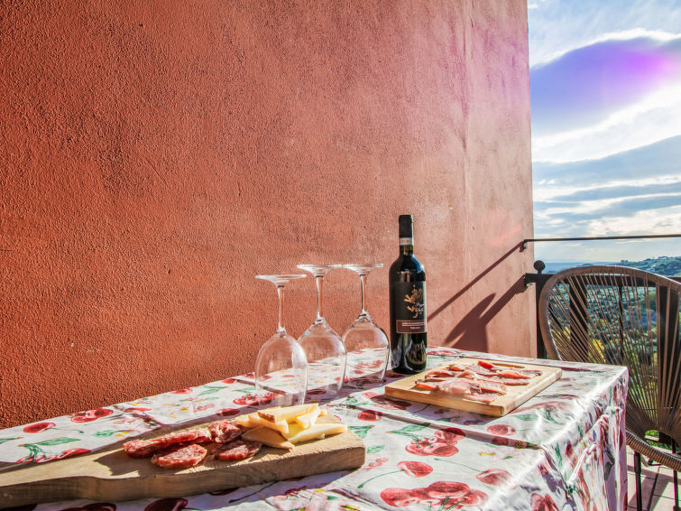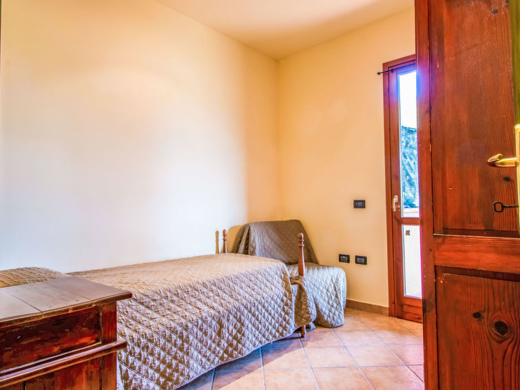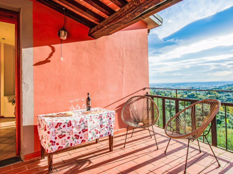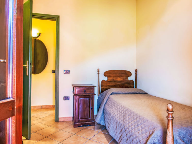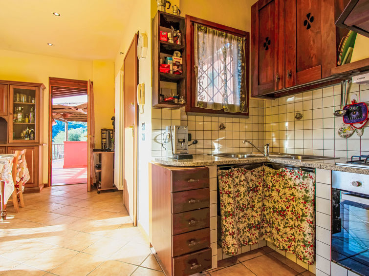 8 rom hus 150 m2 på 2 etasjer. Rustikt og træ møblement møbler: åpen stue med, satelit-TV og stereoanlegg. 1 rom med, 1 dobbeltseng (160 cm), dusj/WC, elektrisk oppvarming og air-conditioning. Utgang til hagen. 1 rom med 1 seng (80 cm). 1 rom med, 1 dobbeltseng (160 cm), elektrisk oppvarming og air-conditioning. Åpent kjøkken (stekeovn, oppvaskmaskin, 4 gassbrennere, brødrister, vannkoker, mikrobølgeovn, frys, elektrisk kaffemaskin) med spisebord, åpen peis. 2 dusjer/WC. øverste etasje: (utendørs trapp), 1 rom med, 1 dobbeltseng (160 cm), elektrisk oppvarming og air-conditioning. 1 rom med 2 senger (80 cm). 1 rom med 1 seng (80 cm). Kjøkken/stue (4 gassbrennere, frys) med liten spisebord, satelit-TV. Utgang til terrassen. Dusj/WC, dobbel servant. Gassoppvarming. Terrasse 20 m2, terrasse 8 m2. Terrassemøbler, grill, liggestoler. Vakker utsikt av landskapet. Fasiliteter: vaskemaskin, strykejern, høy barnestol barneseng for barn opp til 2 år. Internett (trådløs LAN [WLAN], gratis). Parkeringsplass (inngjerdet, 3 Biler) ved hbrukt. Vennligst merk: røykfritt hus. Max kjæledyr/små hunder tillatt 2 kjæledyr/små hunder tillatt. Ingen innvendig dør mellom etasjene.