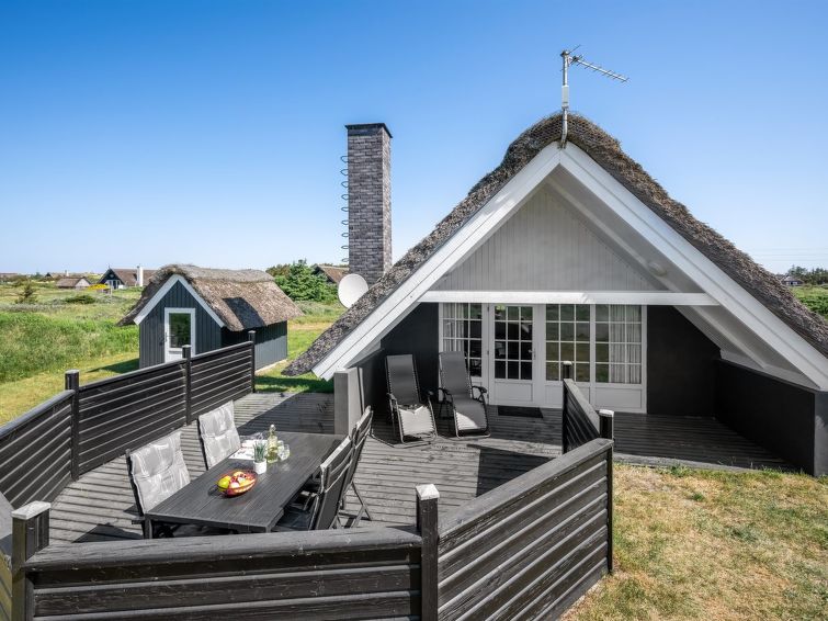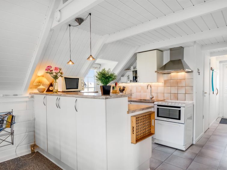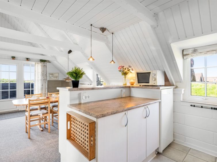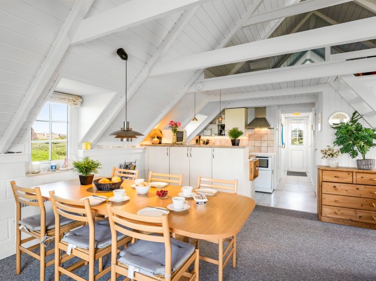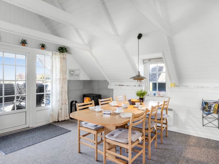 "Franciska" - 800m from the sea in Western Jutland", 2 rom hus 60 m2. Passer for 6 voksne. Stue med, TV, video, CD-spiller, stereoanlegg og DVD. 1 rom med 2 senger. 1 rom med 2 senger. Kjøkken (stekeovn, 4 keramiske kokeplater, mikrobølgeovn, frys). Dusj/WC. øverste etasje: åpen galleri med 2 senger. Fasiliteter: høy barnestol. Internett (trådløs LAN [WLAN]). Max kjæledyr/små hunder tillatt 2 kjæledyr/små hunder tillatt.