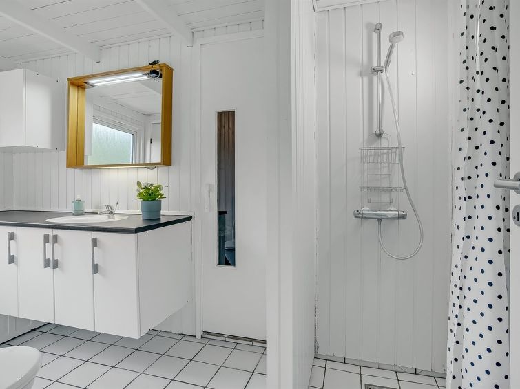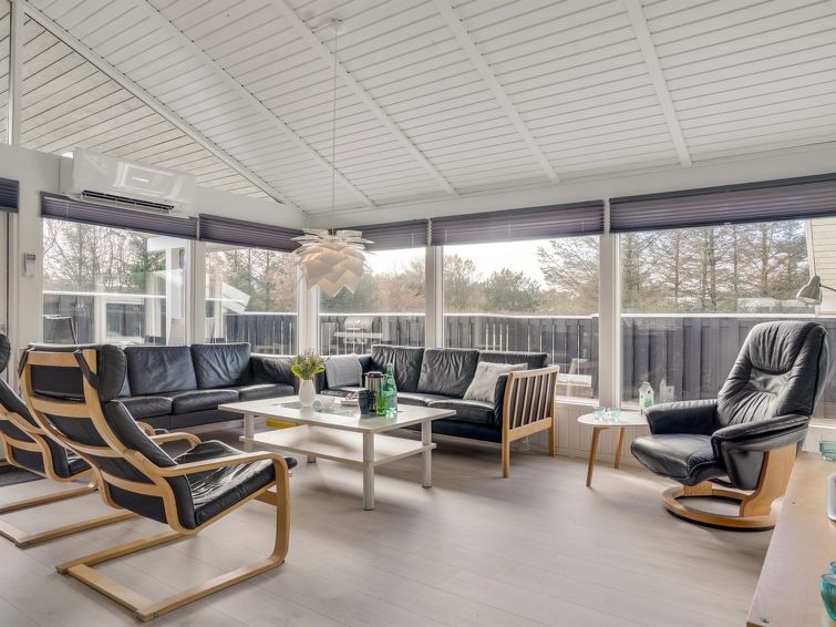 "Franka" - 950m from the sea in NW Jutland", 3 rom hus 127 m2. Passer for 9 voksne + 1 barn. Stue med, TV, radio, CD-spiller og DVD. 1 rom med, 2 sovesoffaer og 1 dobbeltseng. 1 rom med 1 seng og 1 dobbeltseng. 1 rom med, 2 x 2 køysenger. Kjøkken (stekeovn, oppvaskmaskin, 4 keramiske kokeplater, mikrobølgeovn, frys). Dusj/WC, boblebad. Terrasse 8 m2, dekt. Fasiliteter: høy barnestol barneseng (ekstra). Internett (trådløs LAN [WLAN]). Vennligst merk: røykfri bolig. Max kjæledyr / hund tillatt 1 kjæledyr / hund tillatt.