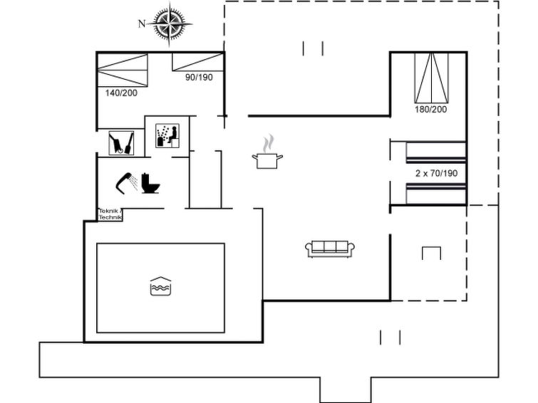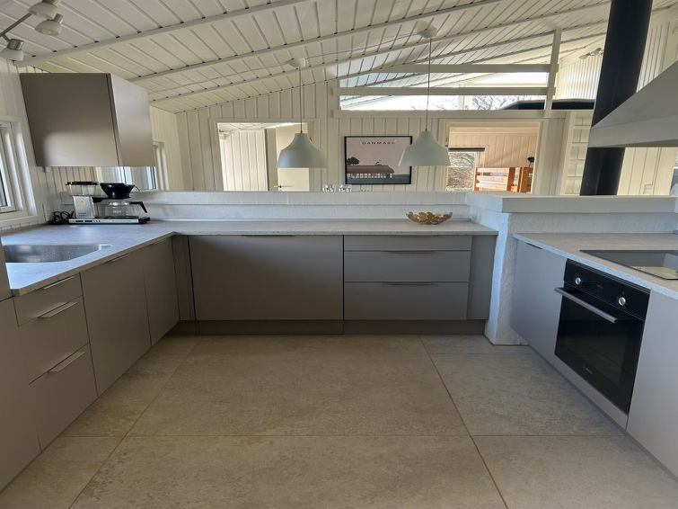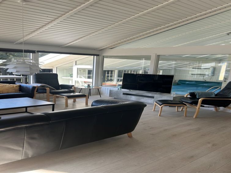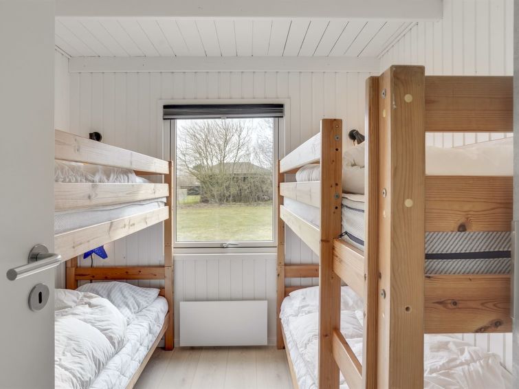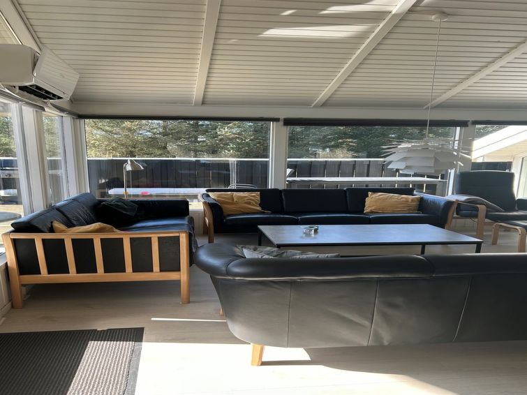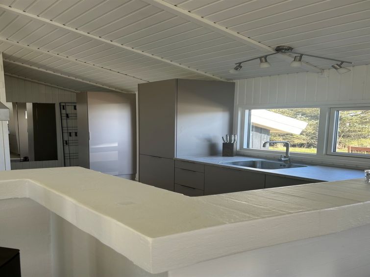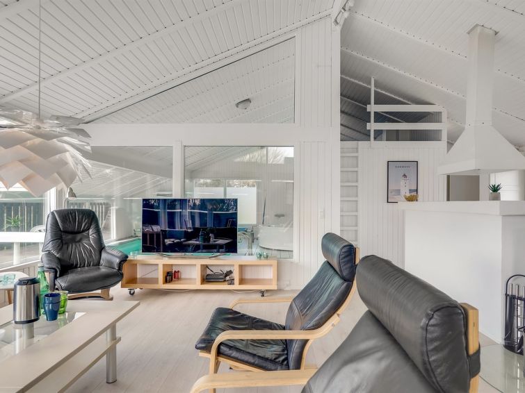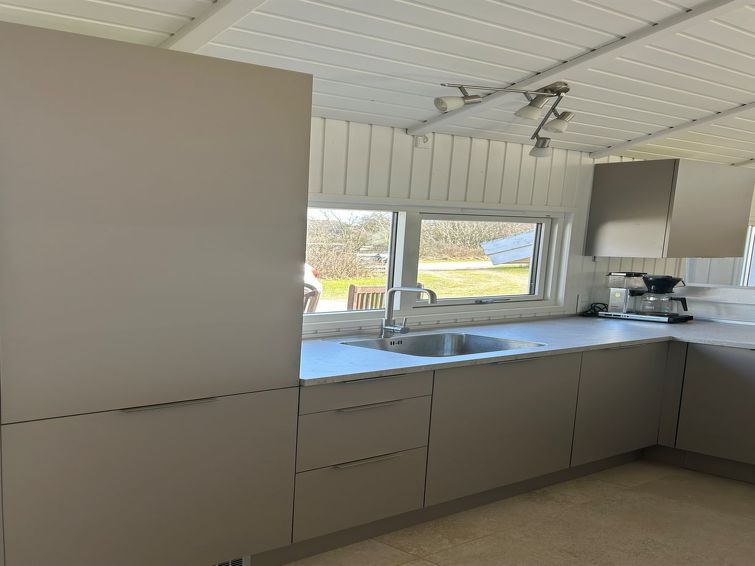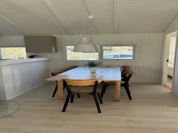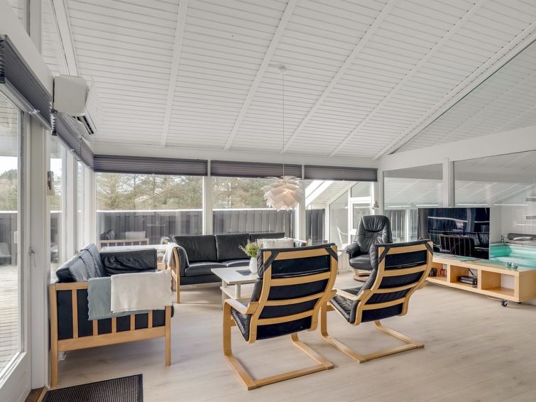"Franka" - 950m from the sea in NW Jutland", 3 rom hus 127 m2. Passer for 9 voksne + 1 barn. Stue med, TV, radio, CD-spiller og DVD. 1 rom med, 2 sovesoffaer og 1 dobbeltseng. 1 rom med 1 seng og 1 dobbeltseng. 1 rom med, 2 x 2 køysenger. Kjøkken (stekeovn, oppvaskmaskin, 4 keramiske kokeplater, mikrobølgeovn, frys). Dusj/WC, boblebad. Terrasse 8 m2, dekt. Fasiliteter: høy barnestol barneseng (ekstra). Internett (trådløs LAN [WLAN]). Vennligst merk: røykfri bolig. Max kjæledyr / hund tillatt 1 kjæledyr / hund tillatt.