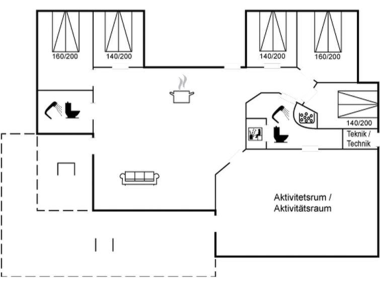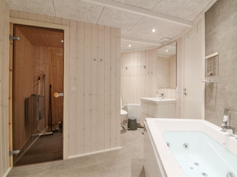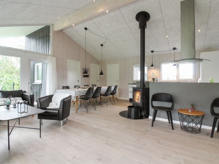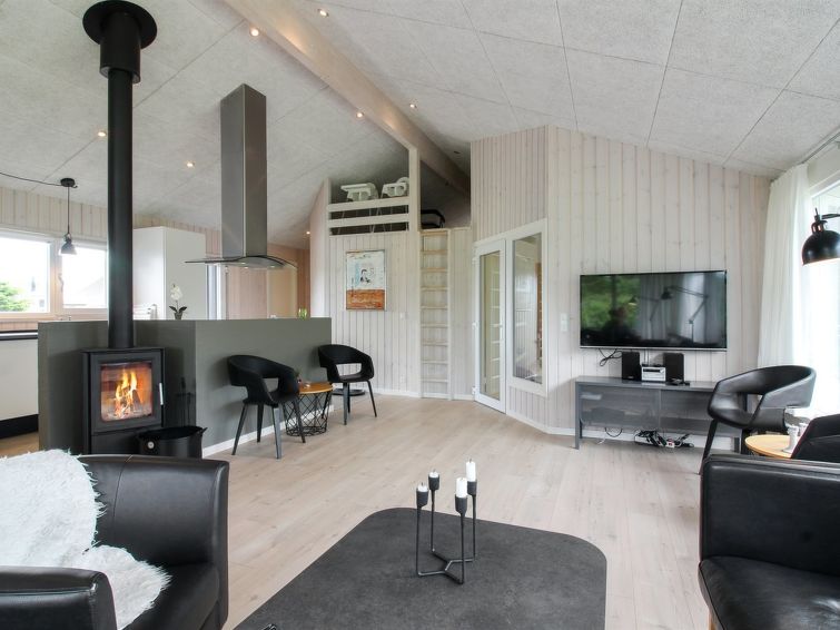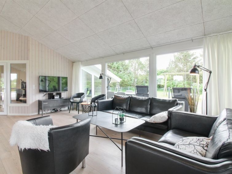 "Franke" - 800m from the sea in NW Jutland", 5 rom hus 150 m2. Passer for 10 voksne. Stue med, TV, radio, CD-spiller og DVD. 1 rom med, 1 dobbeltseng. 1 rom med, 1 dobbeltseng. 1 rom med 2 senger. 1 rom med 2 senger. 1 rom med 2 senger. Kjøkken (stekeovn, oppvaskmaskin, 4 keramiske kokeplater, mikrobølgeovn, frys). 2 dusjer/WC, boblebad. Terrasse 15 m2, dekt. Fasiliteter: høy barnestol. Internett (trådløs LAN [WLAN]). Vennligst merk: røykfri bolig.