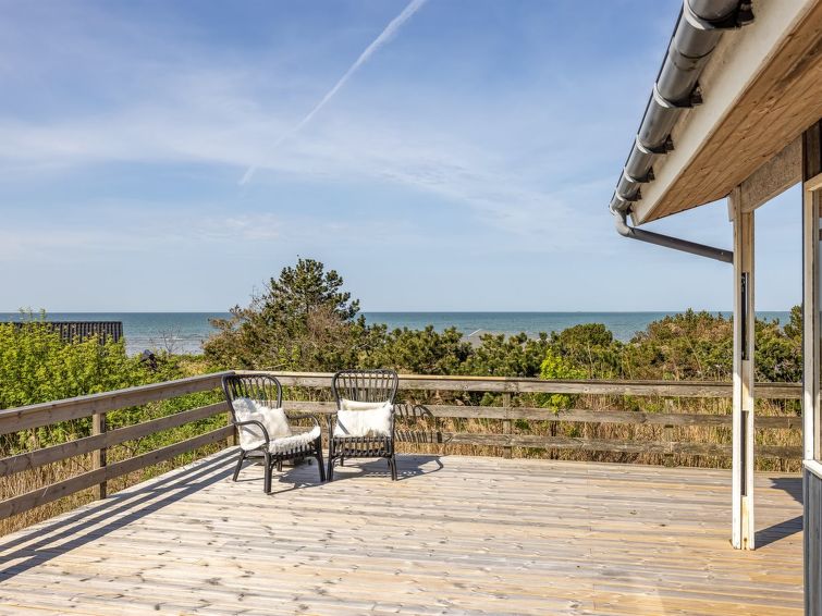 "Frender" - 150m from the sea in NE Jutland", 3 rom hus 90 m2. Passer for 5 voksne. Stue med, TV. 1 rom med, 1 dobbeltseng. 1 rom med 2 senger. 1 rom med 1 seng. Kjøkken (stekeovn, oppvaskmaskin, 4 keramiske kokeplater, mikrobølgeovn, frys). Bad/WC. Utsikt av havet. Fasiliteter: Internett (trådløs LAN [WLAN]). Vennligst merk: røykfri bolig. Max kjæledyr / hund tillatt 1 kjæledyr / hund tillatt.