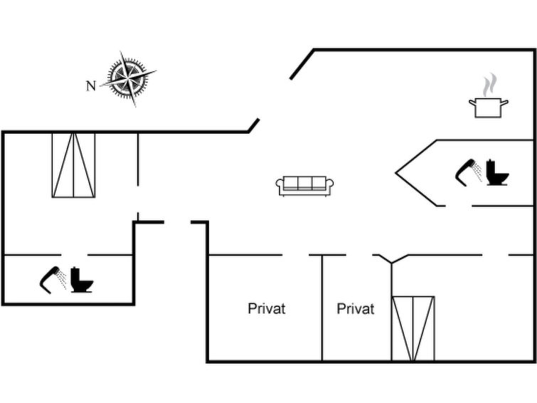 "Fridgerd" - 250m from the sea in NW Jutland", 2 rom hus 106 m2. Passer for 4 voksne. Stue med, TV. 1 rom med, 1 dobbeltseng. 1 rom med, 1 dobbeltseng. Kjøkken (stekeovn, oppvaskmaskin, 4 induksjonskomfyr, mikrobølgeovn, frys). 2 dusjer/WC. Fasiliteter: Internett (trådløs LAN [WLAN]). Vennligst merk: røykfri bolig.