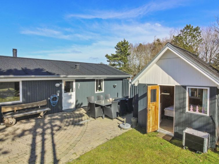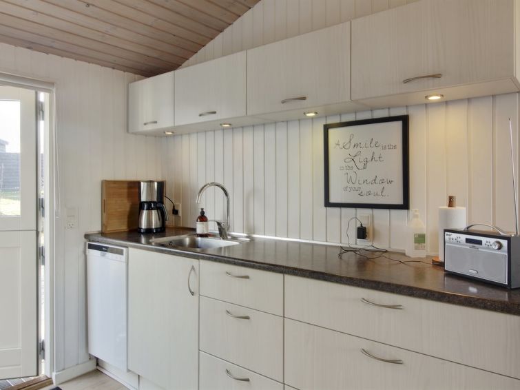 "Fridhild" - 875m from the sea in NW Jutland", 4 rom hus 110 m2. Passer for 6 voksne + 1 barn. Stue med, TV. 1 rom med, 1 dobbeltseng. 1 rom med 1 seng. Studio 1 rom med med 2 senger og 1 dobbeltseng. Kjøkken (stekeovn, oppvaskmaskin, 4 keramiske kokeplater, mikrobølgeovn, frys). Dusj/WC. Fasiliteter: høy barnestol barneseng (ekstra). Internett (trådløs LAN [WLAN]). Vennligst merk: røykfri bolig.