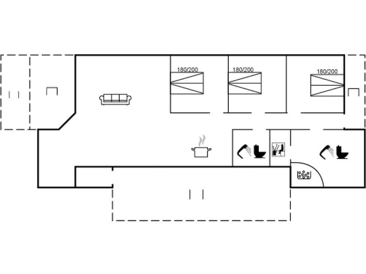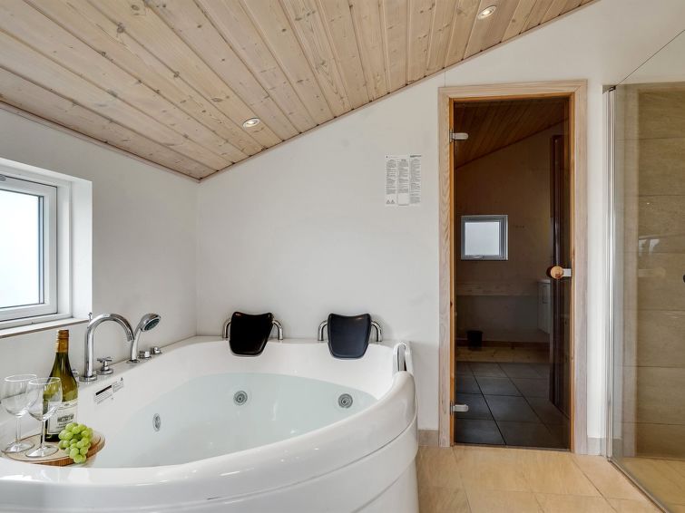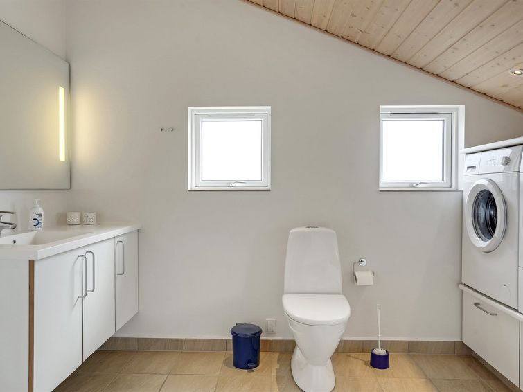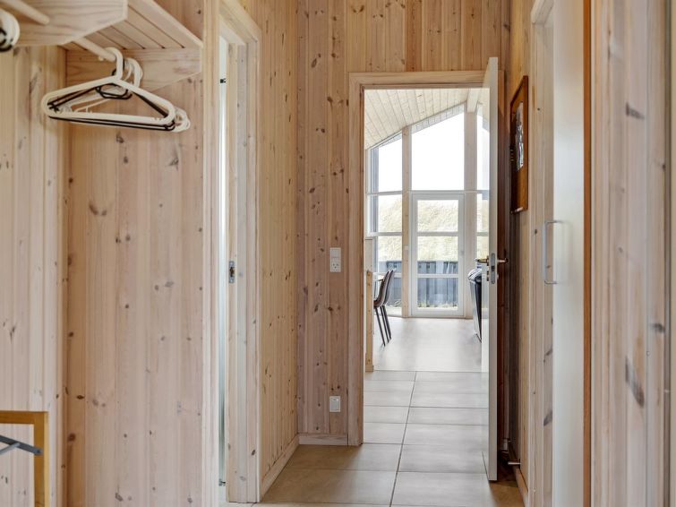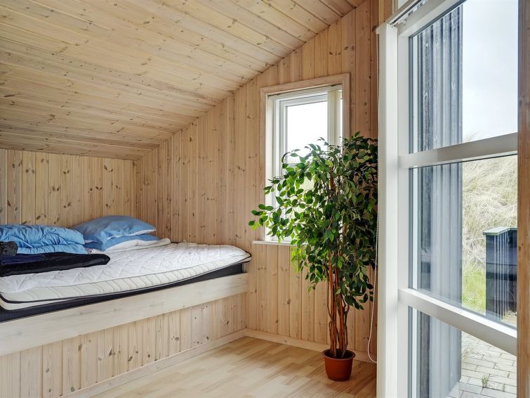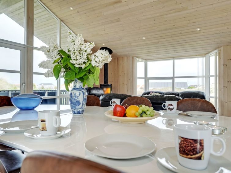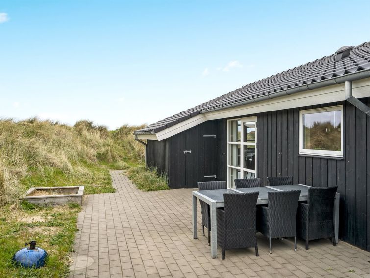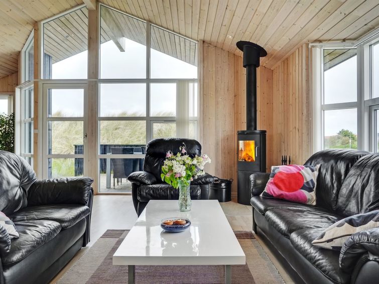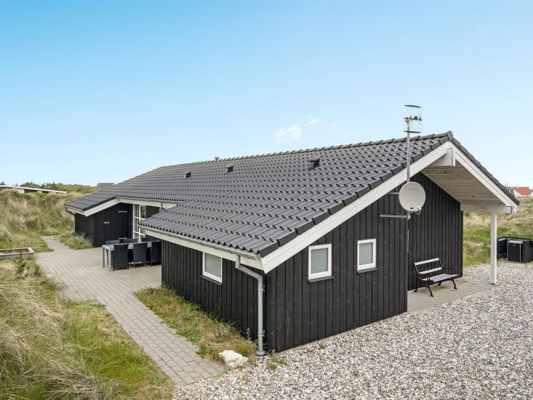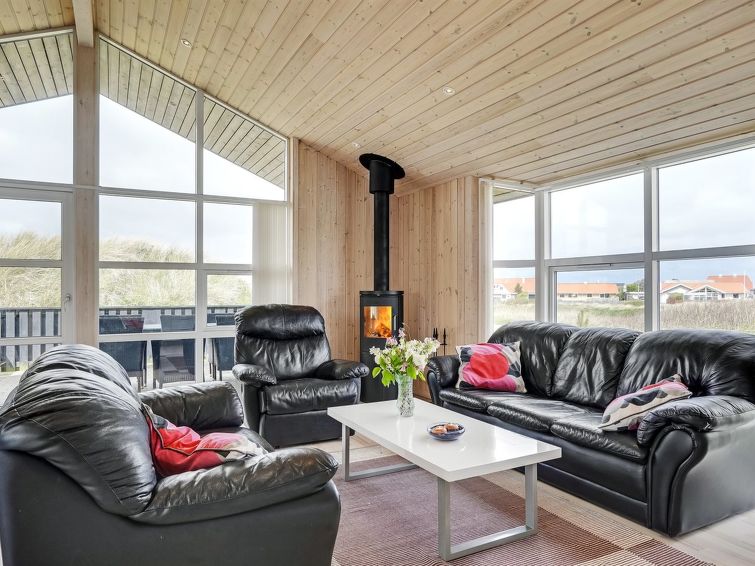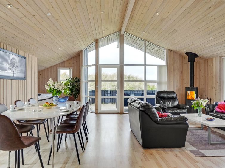 "Frido" - 400m from the sea in NW Jutland", 4 rom hus 122 m2. Passer for 8 voksne. Stue med, TV, stereoanlegg og DVD. 1 rom med, 1 dobbeltseng. 1 rom med, 1 dobbeltseng. 1 rom med, 1 dobbeltseng. Kjøkken (stekeovn, oppvaskmaskin, 4 keramiske kokeplater, mikrobølgeovn, frys). 2 dusjer/WC, boblebad. Terrasse 10 m2, dekt. Fasiliteter: Internett (trådløs LAN [WLAN]). Vennligst merk: røykfri bolig.