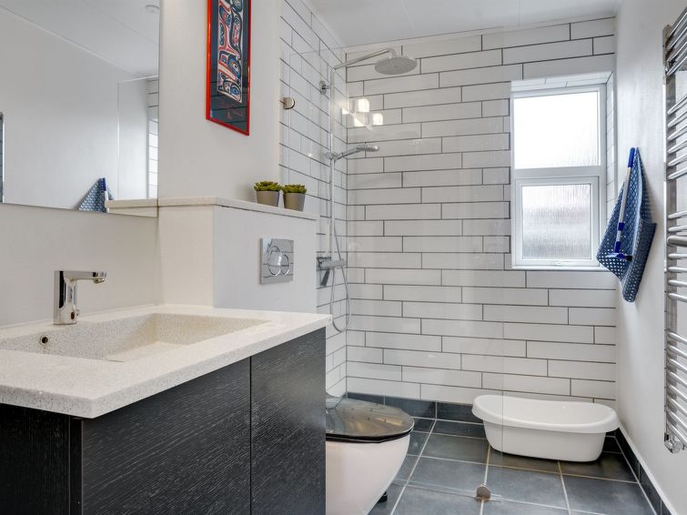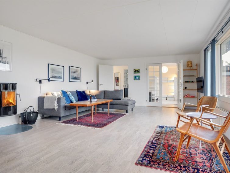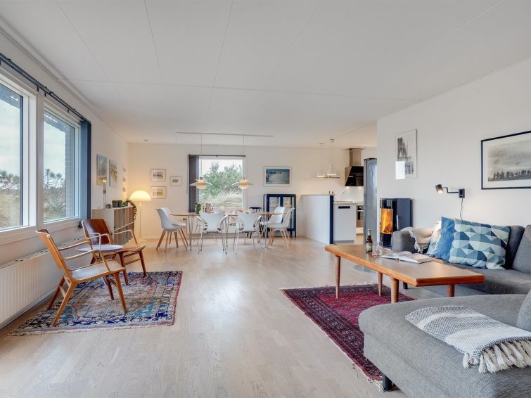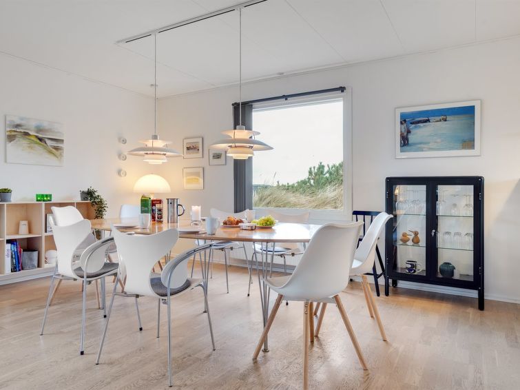 "Fridolina" - 200m from the sea in NW Jutland", 3 rom hus 126 m2. Passer for 8 voksne. Stue med, TV. 1 rom med, 1 dobbeltseng. 1 rom med, 1 dobbeltseng. 1 rom med, 2 x 2 køysenger. Kjøkken (stekeovn, oppvaskmaskin, 4 keramiske kokeplater, mikrobølgeovn, frys). Dusj/WC. Fasiliteter: høy barnestol barneseng (ekstra). Internett (trådløs LAN [WLAN]). Vennligst merk: røykfri bolig.