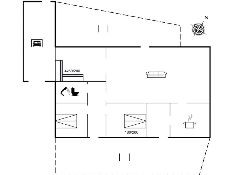Enmannsbolig, bygget i 1975. 200 m fra sjøen. Privat: uberørt tomt 1'300 m2. Terrasse (30 m2), grill. I huset: vaskemaskin, tørketrommel. Parkering ved hbrukt. Daglivarehandel 700 m. Golfbane 5 km. Eieren godtar ikke noen ungdomsgrupper.