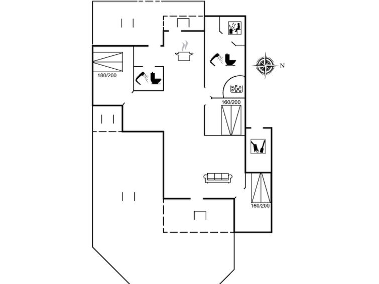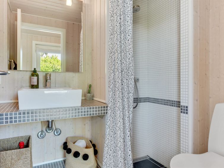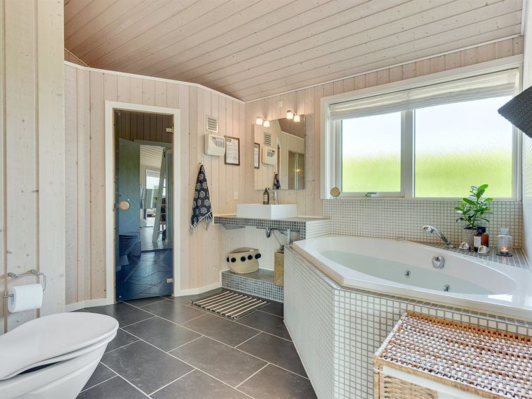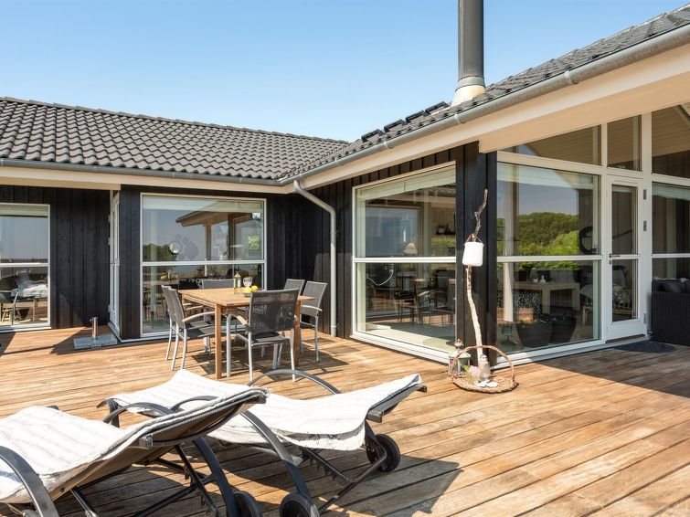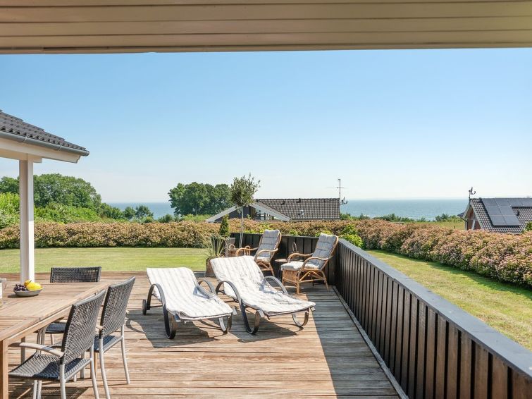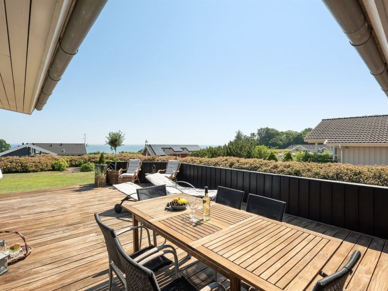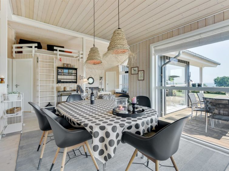 "Fridtjof" - 100m from the sea in SE Jutland", 3 rom hus 102 m2. Passer for 8 voksne. Stue med, TV, radio og DVD. 1 rom med, 1 dobbeltseng. 1 rom med, 1 dobbeltseng. Åpen galleri, 1 rom med, 1 dobbeltseng og 2 sovemuligheter. Kjøkken (stekeovn, oppvaskmaskin, 4 induksjonskomfyr, mikrobølgeovn, frys). 2 dusjer/WC, boblebad. Terrasse 10 m2, dekt. Utsikt av havet. Fasiliteter: høy barnestol. Internett (trådløs LAN [WLAN]). Vennligst merk: røykfri bolig.