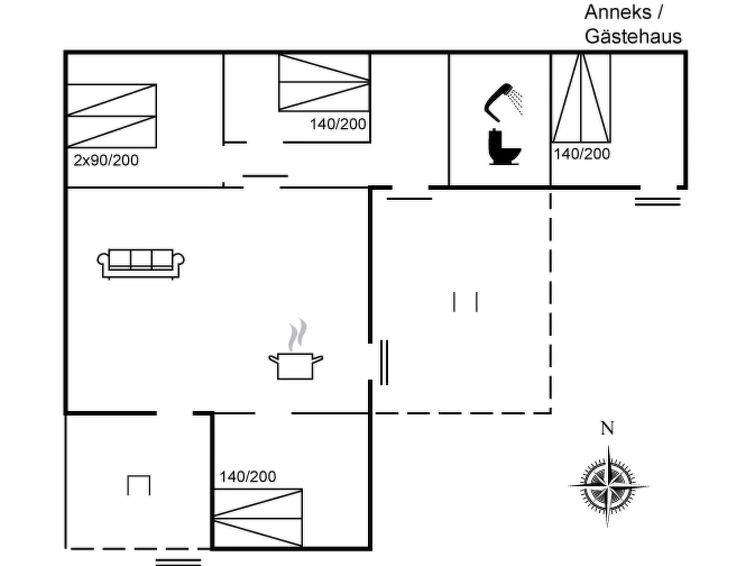 "Frode" - 400m from the sea in Lolland, Falster and Mon", 4 rom hus 84 m2. Passer for 8 voksne. Stue med, TV, radio, CD-spiller og DVD. 1 rom med, 1 dobbeltseng. 1 rom med, 1 dobbeltseng. Studio 1 rom med med 2 senger og 1 dobbeltseng. Kjøkken (stekeovn, oppvaskmaskin, 4 keramiske kokeplater, mikrobølgeovn, frys). Dusj/WC. Terrasse 10 m2, dekt. Fasiliteter: høy barnestol. Internett (trådløs LAN [WLAN]). Vennligst merk: røykfri bolig.