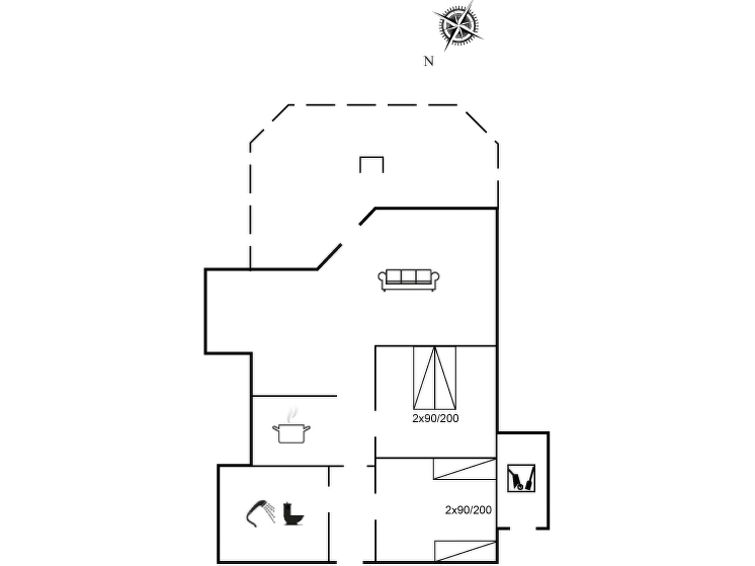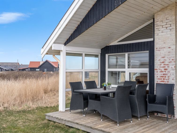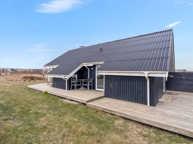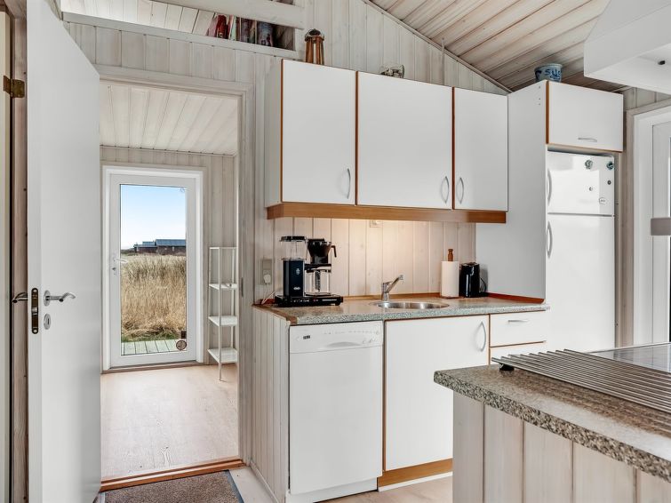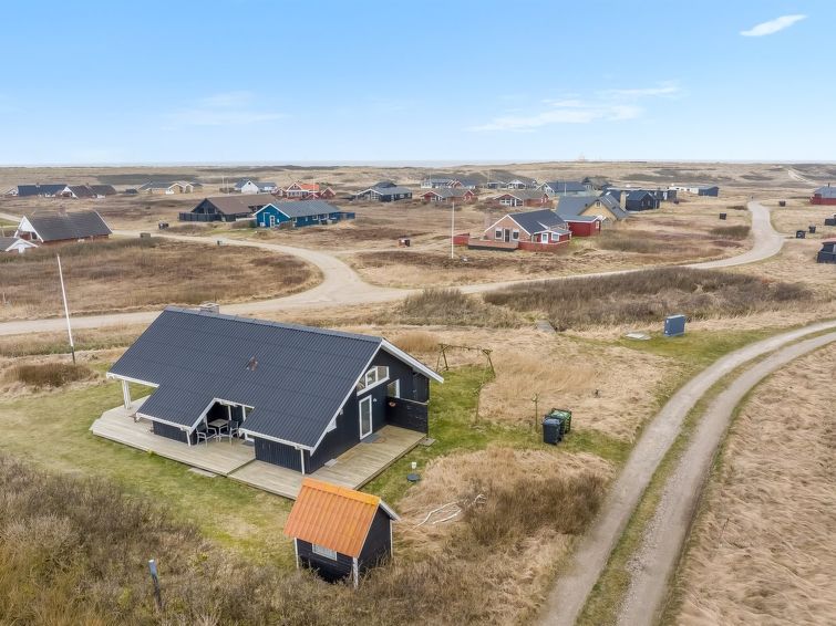 "Galmand" - 300m from the sea in Western Jutland", 2 rom hus 72 m2. Passer for 6 voksne + 1 barn. Stue med, TV, CD-spiller, stereoanlegg og DVD. 1 rom med 2 senger. 1 rom med, 1 dobbeltseng. Kjøkken (stekeovn, oppvaskmaskin, 4 keramiske kokeplater, mikrobølgeovn, frys). Dusj/WC. øverste etasje: åpen galleri med 2 senger. Terrasse 14 m2, dekt. Fasiliteter: høy barnestol. Vennligst merk: røykfri bolig.