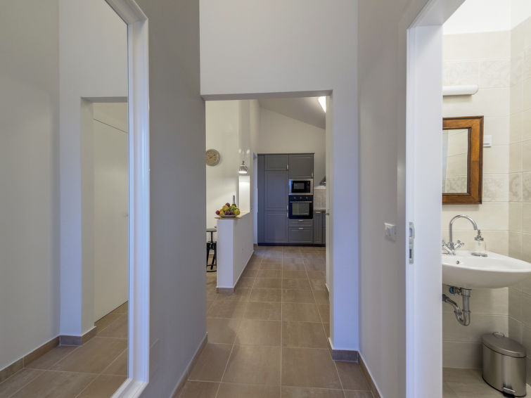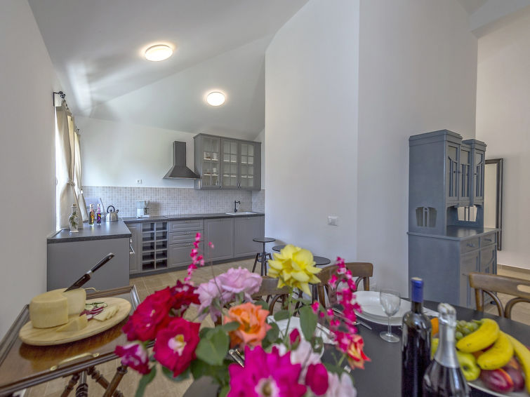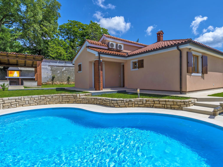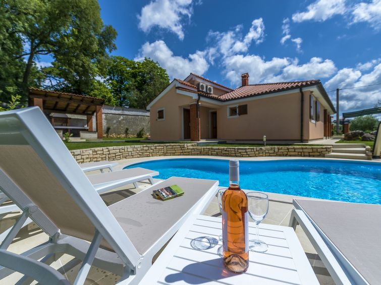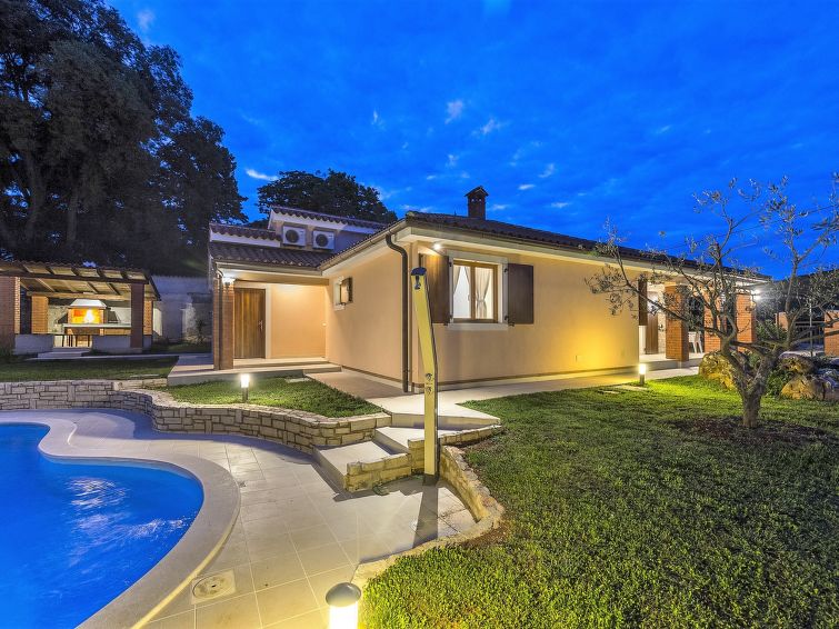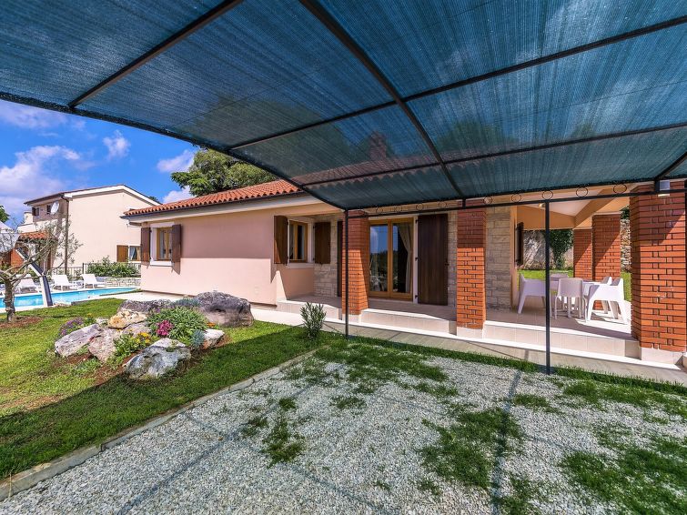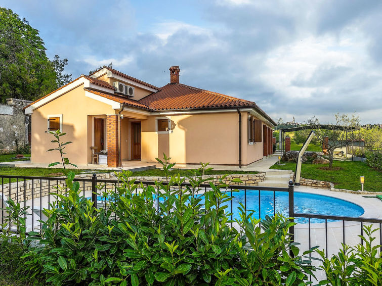 Višnjan 10 km fra Poreč: Enmannsbolig "Gardenia". I det lille tettstedet Kolumbera 1 km fra sentrum av Višnjan, i en solrikt posisjon, 8 km fra sjøen. Privat: tomt 800 m2 (inngjerdet), hage med plen, svømmebasseng (28 m2, dybde 140 cm, 22.04.-30.09.). Formet basseng. Utendørs dusj, terrasse (15 m2), hagemøbler, grill. I hbrukt: internetilkobbling, vaskemaskin. Parkering ved hbrukt på tomten. Butikk 1 km, restaurant 500 m, småstenstrand 8 km, strand ved klipper 8 km. Tennis 13 km, rideskole 10 km, turstier fra hbrukt 100 m, sykkelvei 150 m.