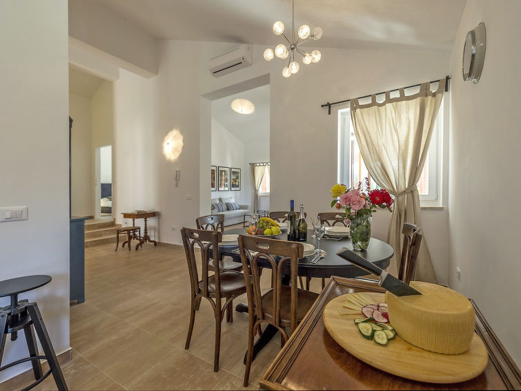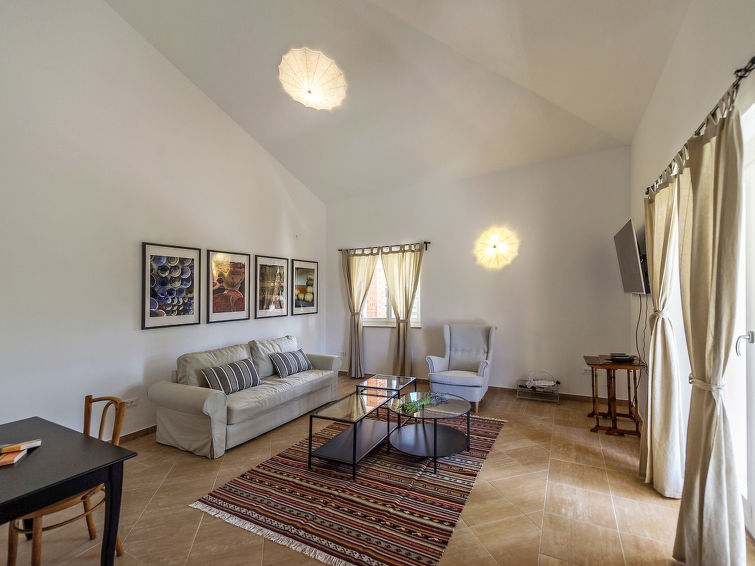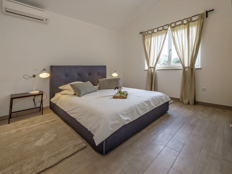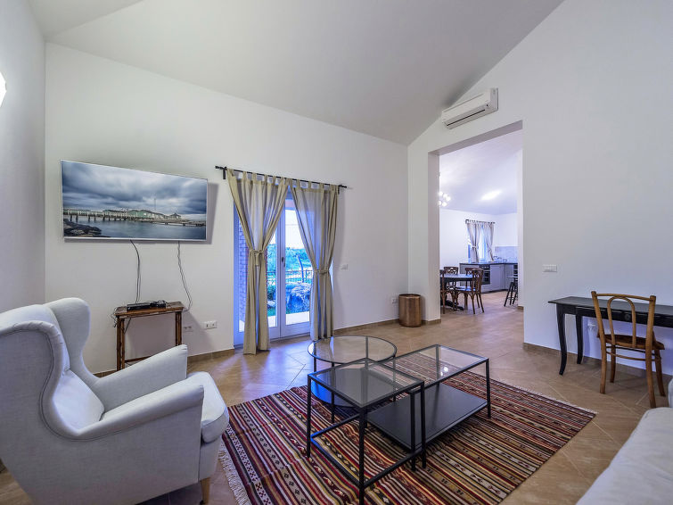 3 rom hus 120 m2. Vakkert møbler: stue/spisestue med, 1 dobbel sovesoffa (160 cm, lengde 200 cm), satelit-TV (flatskjerms TV), air-conditioning. Utgang til terrassen. 2 rom, hvert rom med, 1 dobbeltseng (160 cm, lengde 200 cm), dusj/WC og air-conditioning. Åpent kjøkken (ovn, oppvaskmaskin, 4 keramiske kokeplater, frys, elektrisk kaffemaskin) med, air-conditioning. Dusj/WC. Varmluftsoppvarming. Terrasse 15 m2, dekt. Terrassemøbler, liggestoler. Utsikt av svømmebassenget og hagen. Fasiliteter: barneseng (ekstra). Internett (trådløs LAN [WLAN], gratis). 1 lite kjæledyr / liten hund tillatt.
