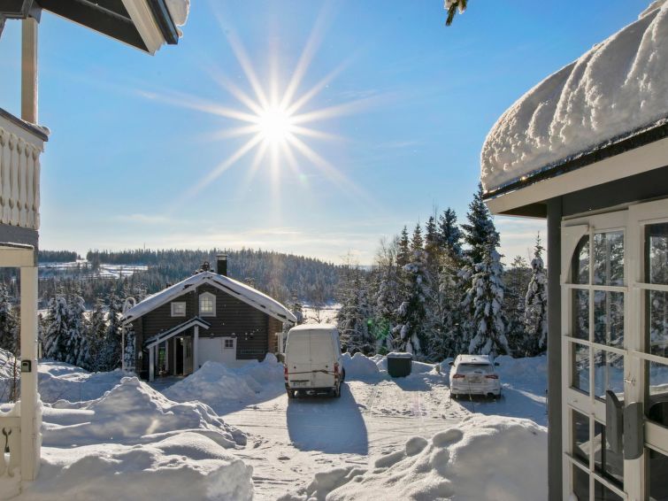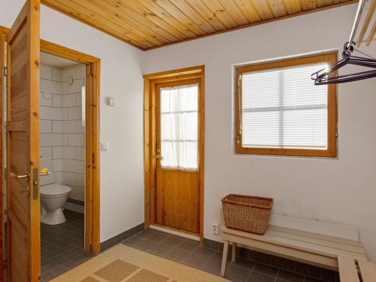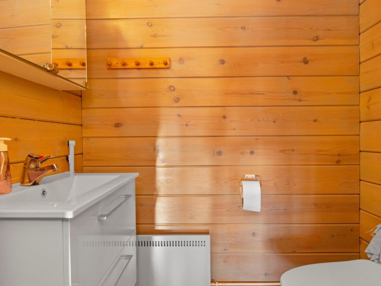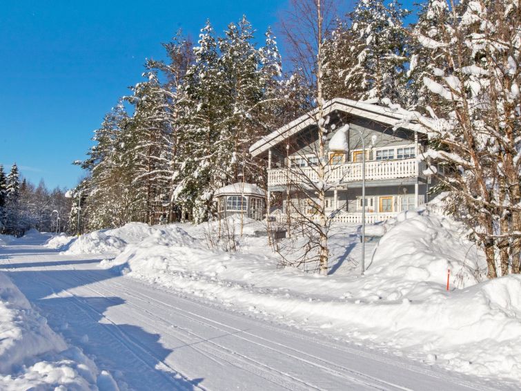 Ukkohalla: Tourism centre located by Lake Syväjärvi, with an information centre, store, restaurant, spa, slope centre, snowmobile tracks, ski tracks, programme services, beach (further information at www.ukkohalla.fi). Distance to the Ukkohalla services 1.0 km. Kajaani airport 86 km, Oulu 170 km, Helsinki 650 km, bus stop Hyrynsalmi 18 km, railway station Kontiomäki 66 km. Pets allowed, view over the slopes and Lake Syväjärvi.