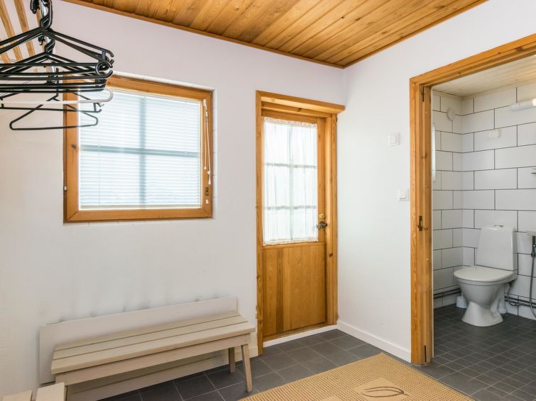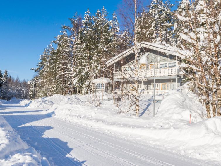 Ukkohalla: Tourism centre located by Lake Syväjärvi, with an information centre, store, restaurant, spa, slope centre, snowmobile tracks, ski tracks, programme services, beach (further information at www.ukkohalla.fi). Distance to the Ukkohalla services 1.0 km. Kajaani airport 86 km, Oulu 170 km, Helsinki 650 km, bus stop Hyrynsalmi 18 km, railway station Kontiomäki 66 km. Pets allowed, view over slopes and Lake Syväjärvi.