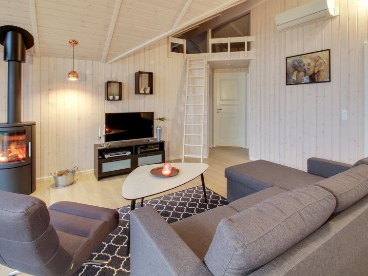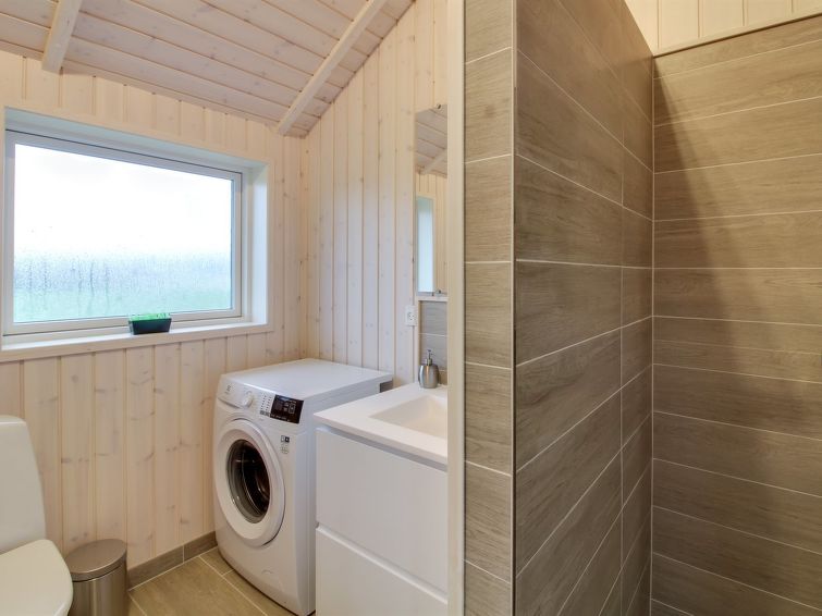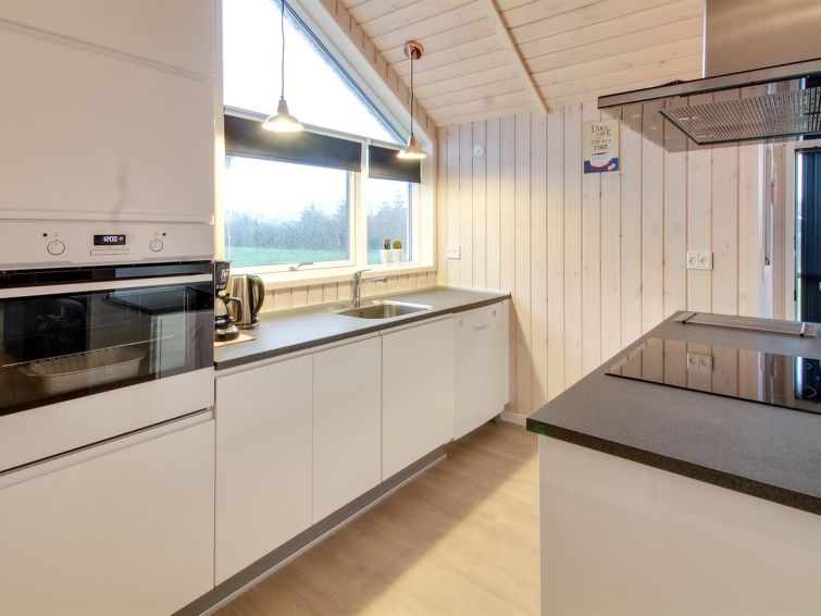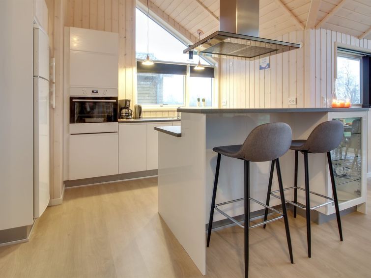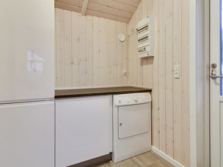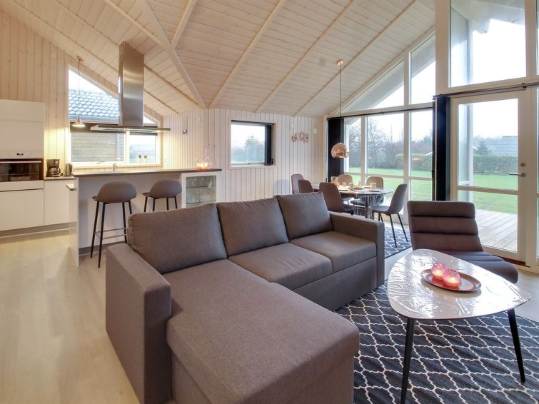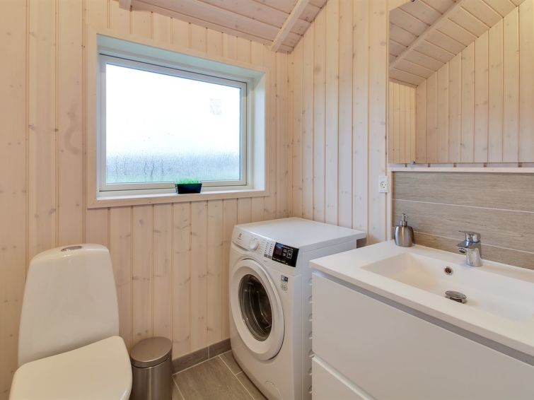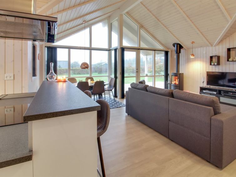 "Gertrude" - 1.1km to the inlet in Western Jutland", 3 rom hus 81 m2. Passer for 6 voksne + 1 barn. Stue med, TV og DVD. 1 rom med, 1 dobbeltseng. 1 rom med, 1 dobbeltseng. 1 rom med 2 senger. Kjøkken (stekeovn, oppvaskmaskin, 4 keramiske kokeplater, mikrobølgeovn, frys). Dusj/WC. Terrasse 8 m2, dekt. Fasiliteter: høy barnestol. Internett (trådløs LAN [WLAN]). Vennligst merk: røykfri bolig.