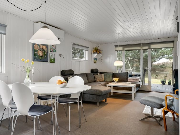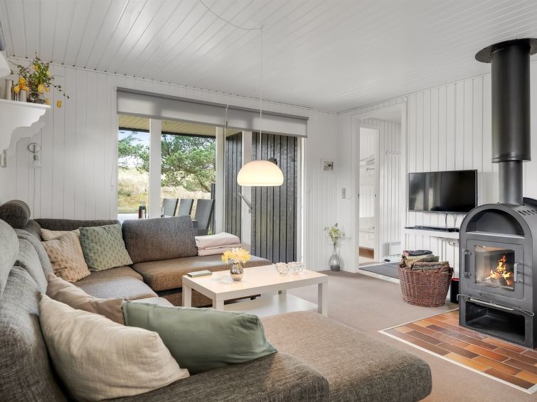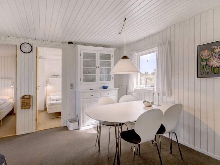 "Gerwer" - 700m from the sea in NW Jutland", 3 rom hus 64 m2. Passer for 6 voksne + 1 barn. Stue med, TV, CD-spiller, stereoanlegg og DVD. 1 rom med, 1 x 2 køysenger. 1 rom med, 1 dobbeltseng. 1 rom med, 1 dobbeltseng. Kjøkken (stekeovn, oppvaskmaskin, 4 keramiske kokeplater, mikrobølgeovn, frys). Dusj/WC. Terrasse 11 m2, dekt. Fasiliteter: høy barnestol barneseng (ekstra). Internett (trådløs LAN [WLAN]). Vennligst merk: røykfri bolig.