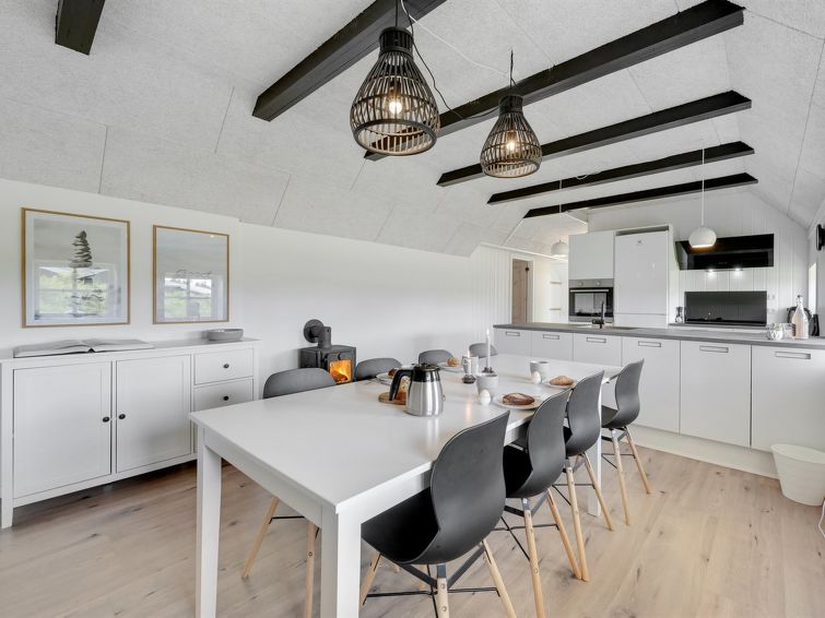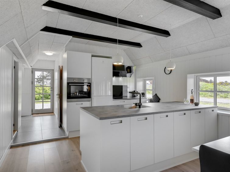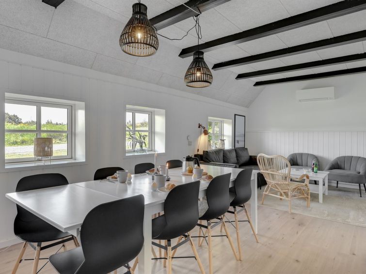 "Giesela" - 975m from the sea in Western Jutland", 4 rom hus 139 m2. Passer for 12 voksne + 1 barn. Stue med, TV. 1 rom med, 1 dobbeltseng. 1 rom med, 1 dobbeltseng. 1 rom med 2 senger. Åpen galleri, 1 rom med 1 seng og 3 sovemuligheter. Kjøkken (stekeovn, oppvaskmaskin, 4 keramiske kokeplater, mikrobølgeovn, frys). 2 dusjer/WC, boblebad. Fasiliteter: høy barnestol barneseng (ekstra). Internett (trådløs LAN [WLAN]). Vennligst merk: røykfri bolig. Max kjæledyr / hund tillatt 1 kjæledyr / hund tillatt.
