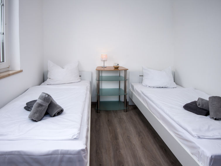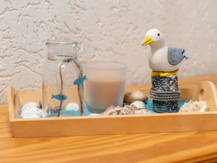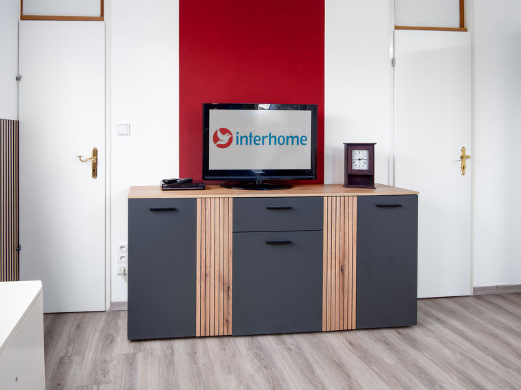 3 rom rekkehus 54 m2, på bakkeplan. Koseligt møbler: stue/spisestue 22 m2 med, satelit-TV og radio. Utgang til terrassen. 1 rom 8 m2 med, 1 dobbeltseng (2 x 100 cm, lengde 200 cm). 1 barnerom 6 m2 med, 1 x 2 køysenger (90 cm, lengde 190 cm). Lite kjøkken (4 kokeplater, stekeovn, mikrobølgeovn, elektrisk kaffemaskin). Dusj/WC. Liten terrasse. Terrassemøbler. Fasiliteter: høy barnestol. Internett (trådløs LAN [WLAN], gratis). Vennligst merk: røykfritt hus. Kjæledyr / hund tillatt 1 kjæledyr / hund tillatt. Røykvarsler.