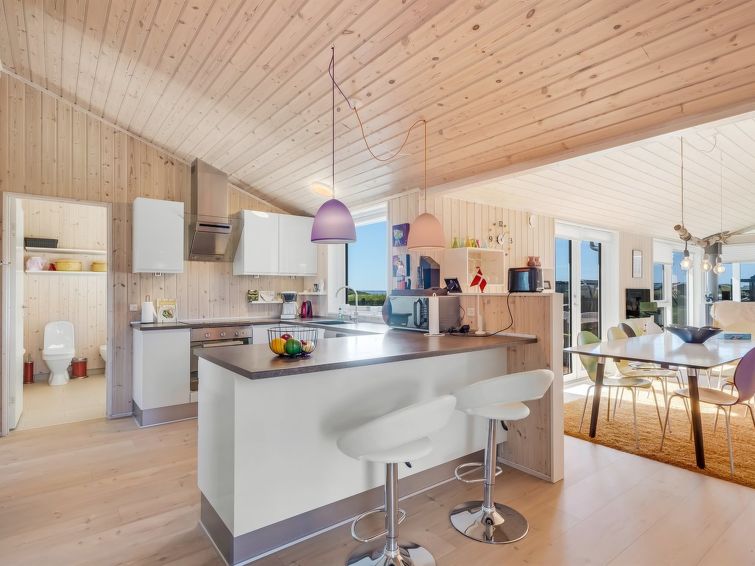 "Ginia" - 150m to the inlet in The Liim Fiord", 3 rom hus 100 m2. Passer for 6 voksne + 1 barn. Stue med, TV og radio. 1 rom med, 1 dobbeltseng. 1 rom med, 1 dobbeltseng. 1 rom med, 1 dobbeltseng. Kjøkken (stekeovn, oppvaskmaskin, 4 induksjonskomfyr, mikrobølgeovn, frys). Dusj/WC, boblebad. Terrasse 20 m2, dekt. Av viken. Fasiliteter: høy barnestol barneseng (ekstra). Internett (trådløs LAN [WLAN]). Vennligst merk: røykfri bolig.