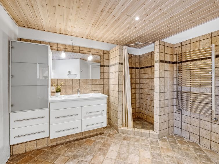 "Ginny" - 300m to the inlet in The Liim Fiord", 4 rom hus 155 m2. Passer for 8 voksne + 1 barn. Stue med, TV, radio og CD-spiller. 1 rom med, 1 dobbeltseng. 1 rom med, 1 dobbeltseng. 1 rom med, 1 dobbeltseng. 1 rom med, 1 dobbeltseng. Kjøkken (stekeovn, oppvaskmaskin, 4 keramiske kokeplater, mikrobølgeovn, frys). 2 dusjer/WC, boblebad. Av viken. Fasiliteter: høy barnestol barneseng (ekstra). Internett (trådløs LAN [WLAN]). Vennligst merk: røykfri bolig. Max kjæledyr / hund tillatt 1 kjæledyr / hund tillatt.