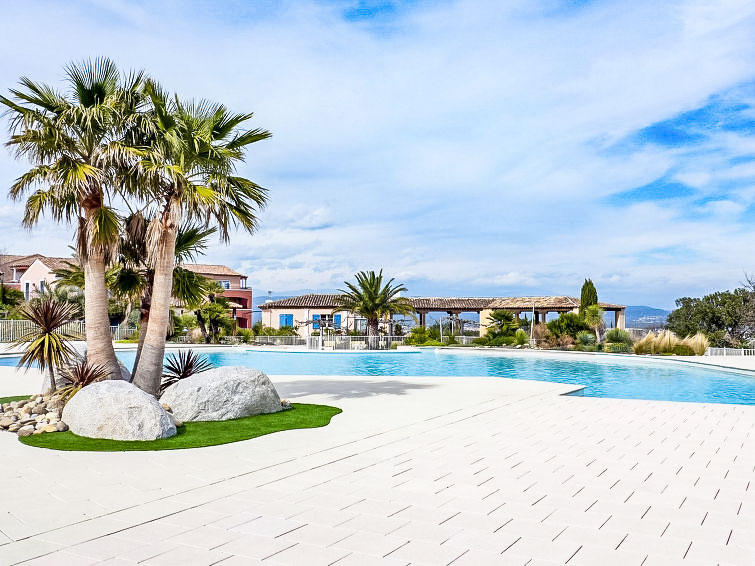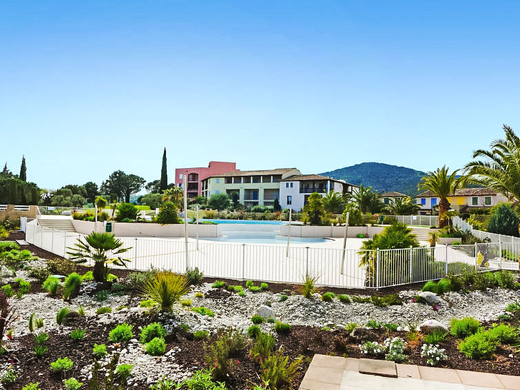 Fin residens "Golf de Roquebrune". Utenfor området, 8 km fra sentrum av Roquebrune sur Argens, i en høyt posisjon ved en høyde, 8 km fra sjøen, 8 km fra stranden. Fellesbruk: 1 badebasseng (15 x 30 m, dybde 80- 250 cm dyp, 01.05.-31.10. bassengets åpningstider: 09:00-20:00). Barnebasseng, tennis, parkering. Butikk 8 km, daglivarehandel 4 km, kjøpesenter 10 km, sandstrand "Plage de Saint Aygulf" 8 km. Golfbane 700 m, rideskole 1 km, idrettsenter 2 km. Attraksjoner i nærheten: Club Hippique 1 km, Saint Aygulf 7 km, Aqualand, Lunapark 9 km, Fréjus 10 km, Saint Raphael 12 km, Saint Tropez 35 km. Vennligst merk: bil anbefales. Overvåket bygning. Bygning med elektriske portener.