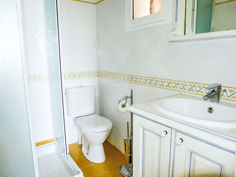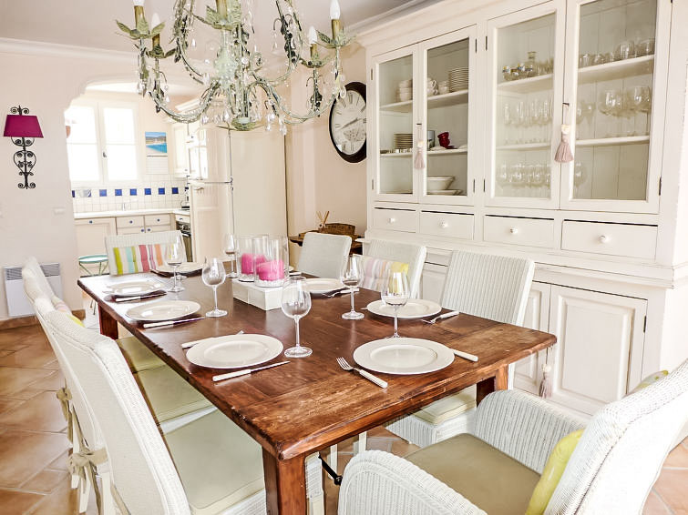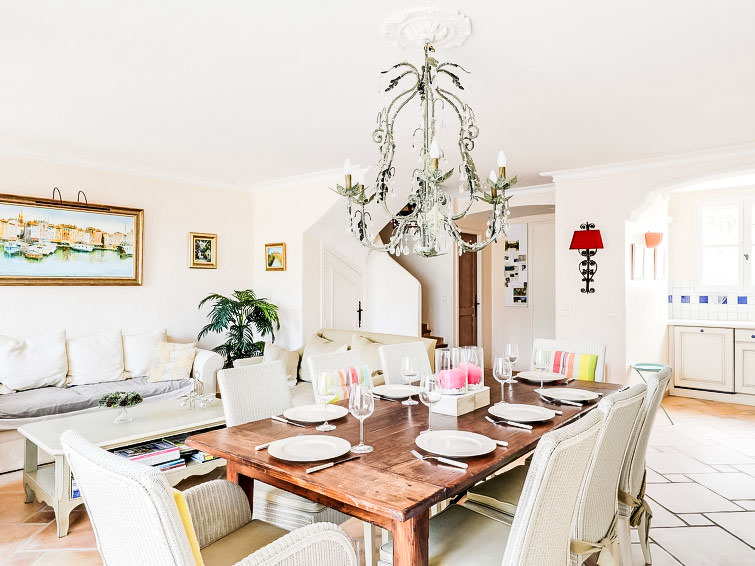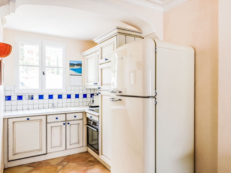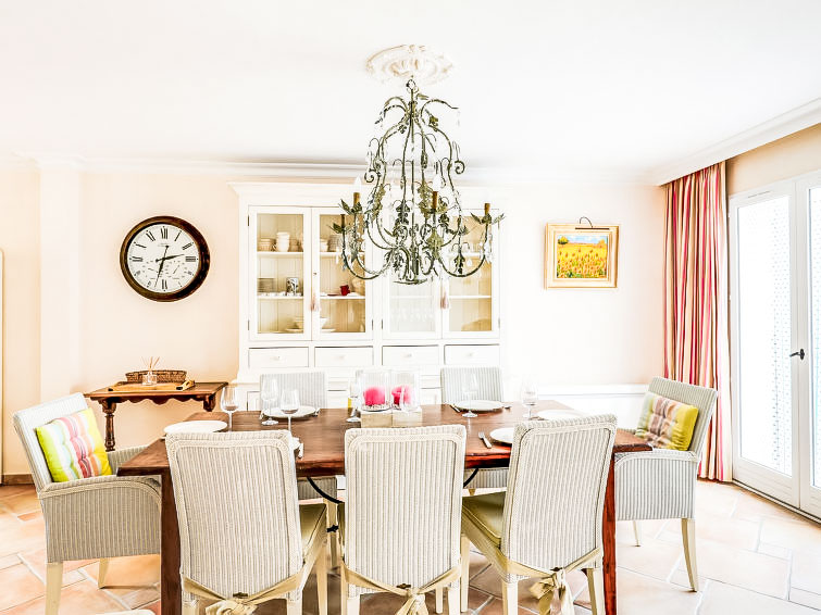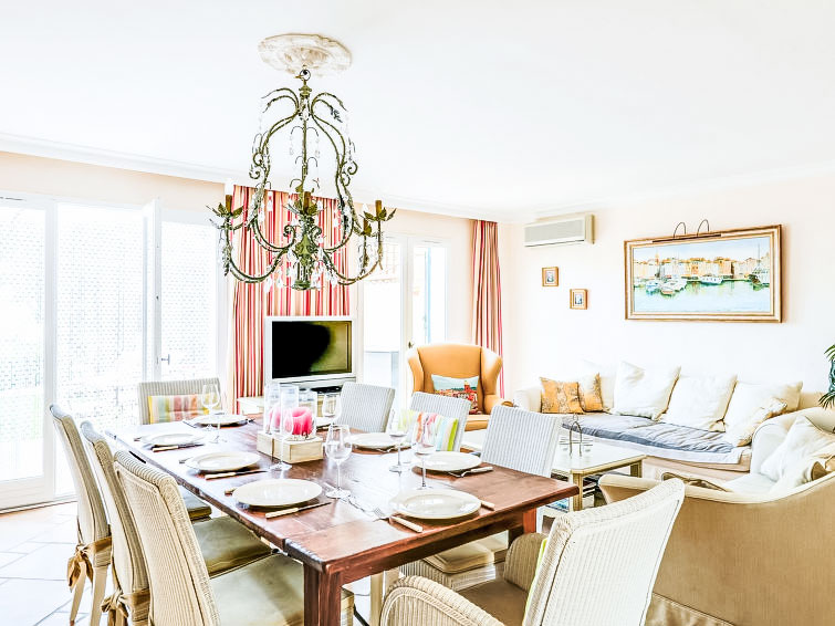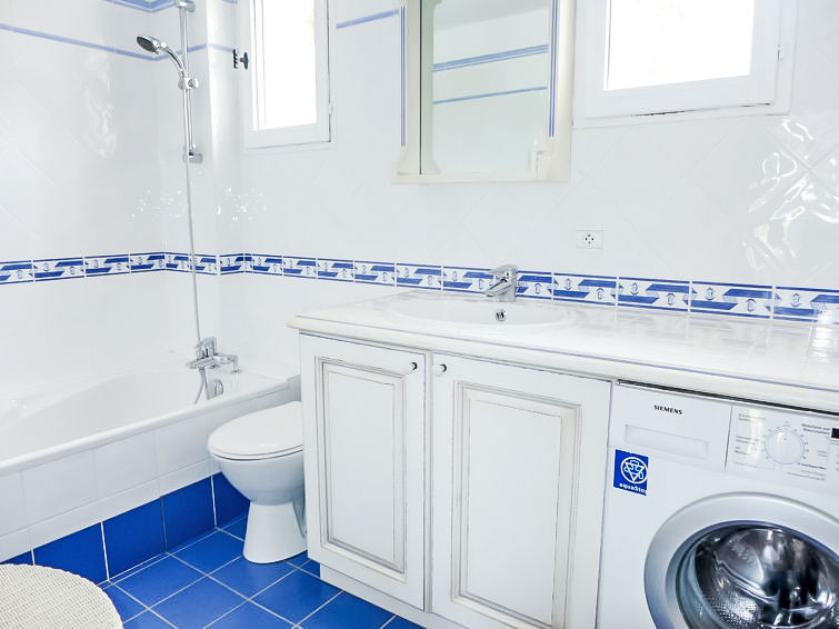 5 rom rekkehus 130 m2 på 3 etasjer. Komfortabelt og vakkert møbler: stue/spisestue med, TV (flatskjerms TV), air-conditioning. Utgang til hagen, til terrassen. Åpent kjøkken (4 kokeplater, ovn, oppvaskmaskin, mikrobølgeovn, frys, elektrisk kaffemaskin). Sep. WC. øverste etasje: 1 rom med, 1 dobbeltseng (1 x 160 cm, lengde 200 cm), vifte. Utgang til balkongen. 1 rom med, 1 dobbeltseng (1 x 160 cm, lengde 200 cm), dusj/WC. Bad. øverste etasje: 1 rom med, 1 dobbeltseng (1 x 160 cm, lengde 200 cm), dusj/WC og vifte. 1 rom med, 1 dobbeltseng (1 x 160 cm, lengde 200 cm), dusj/WC. Utgang til terrassen. Balkong 2 m2, terrasse 9 m2, dekt terrasse 18 m2, dekt, sitteplass i hagen 40 m2. Terrassemøbler, grill, liggestoler (2). Utsikt av havet. Fasiliteter: vaskemaskin, strykejern, hårføner. Internett (trådløs LAN [WLAN], gratis). Vennligst merk: max 1 lite kjæledyr / liten hund tillatt. Røykvarsler. 83107000272MM
