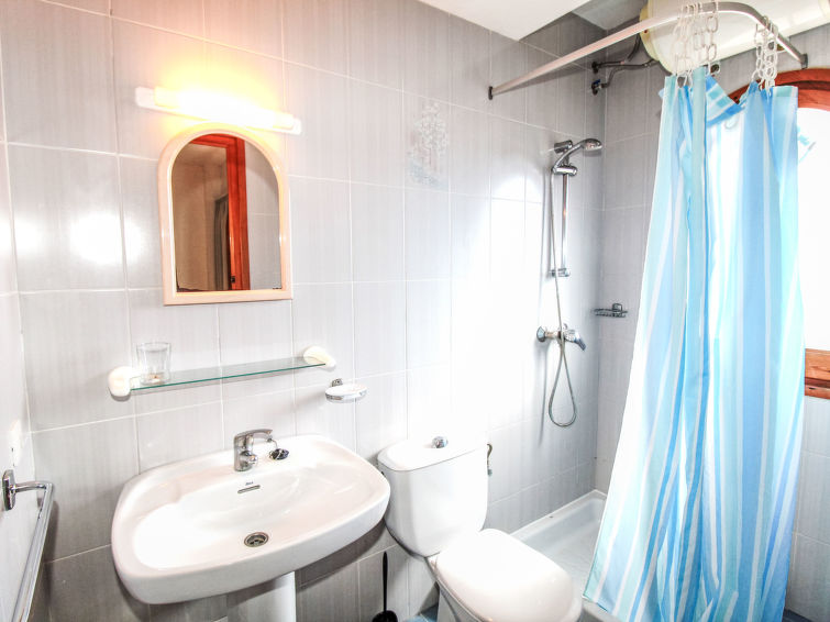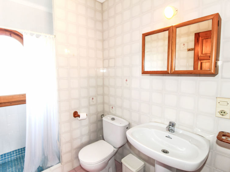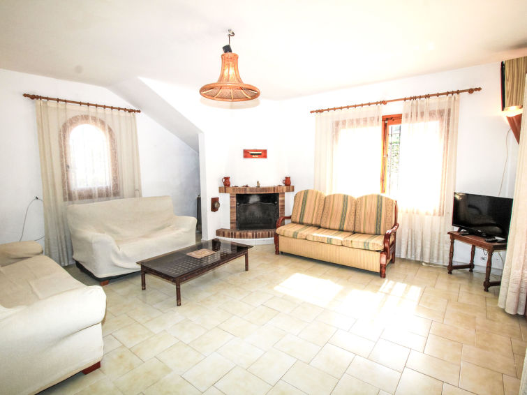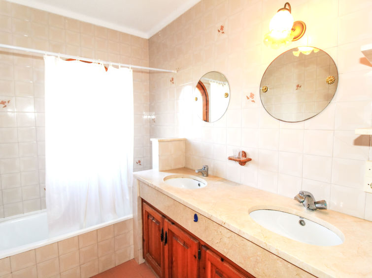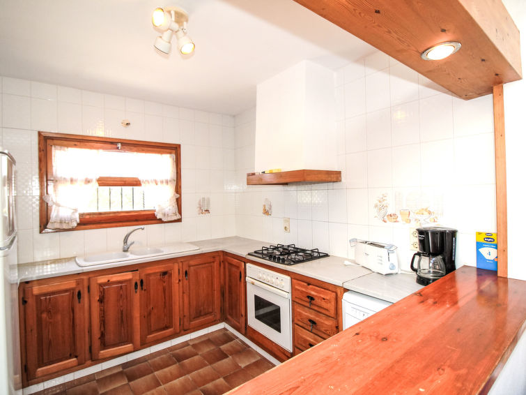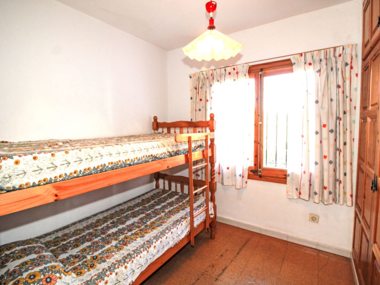 "Golf Pals (PAL264)", 6 rom hus 90 m2 på 2 etasjer. Koseligt møbler: stue/spisestue med, åpen peis, spisebord og satelit-TV. Utgang til terrassen. 1 rom med, 1 dobbeltseng (135 cm, lengde 180 cm). 1 rom med, 1 dobbeltseng (2 x 90 cm, lengde 190 cm). 1 rom med, 1 x 1 køysenger. Åpent kjøkken (4 kokeplater, stekeovn, oppvaskmaskin, 4 gassbrennere, brødrister, elektrisk kaffemaskin) med bar. Bad/WC, dusj/WC, dobbel servant. øverste etasje: (utendørs trapp), 1 rom med, 1 dobbeltseng (2 x 80 cm, lengde 190 cm), dusj/WC. Oppvarmingsalternativ. Terrasse dekt. Terrassemøbler, grill, liggestoler (6). Fasiliteter: vaskemaskin, barneseng. Vennligst merk: et dobbeltrom ligger utenfor leiligheten. Max kjæledyr/små hunder tillatt 2 kjæledyr/små hunder tillatt. HUTG-024646