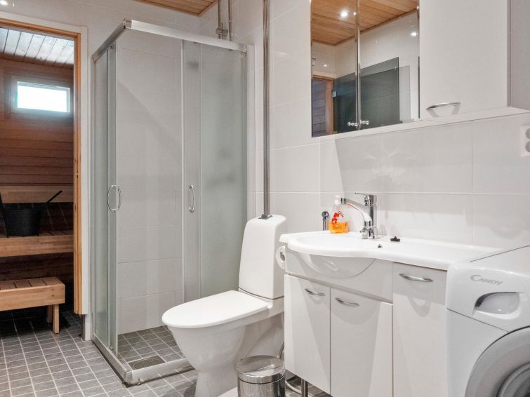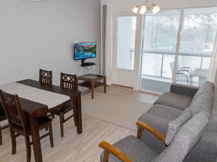 Well-equipped holiday apartment in Virpiniemi near the facilities like golf course, ski trails and other diverse recreational opportunities. 1 km distance to the swimming beach by the sea.