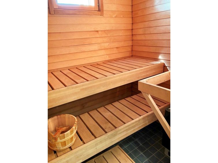 Living room/kitchen with sofa bed, bedroom with 2 beds, sauna, washroom/WC, lobby and glazed terrace.
