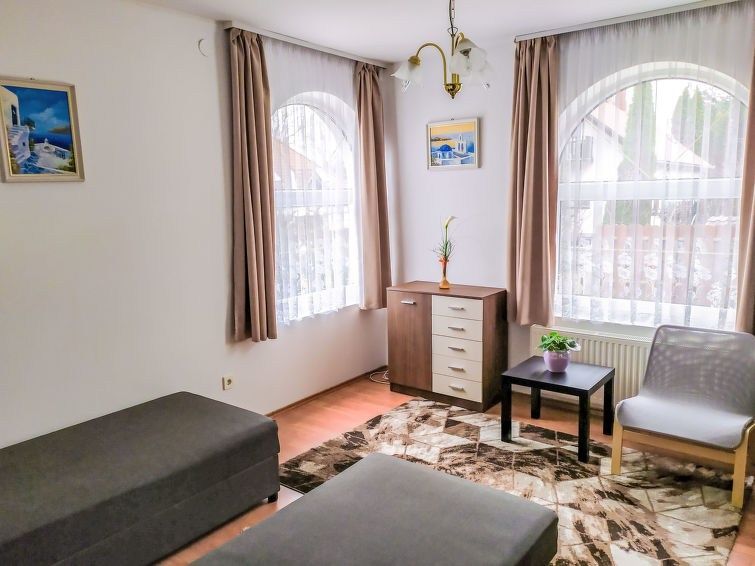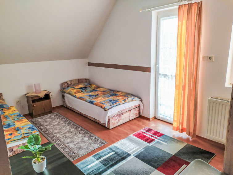 Balatonszárszó: Stor, koselig hus "Goliath", med 2 etasjer. I en roligt, solrikt posisjon, 500 m fra innsjø. Fellesbruk: tomt 500 m2, hage med plen. Daglivarehandel, restaurant 500 m, sandstrand 800 m, strand med gress 500 m. Lekeplass 500 m. Vennligst merk: eieren bor på same tomt.