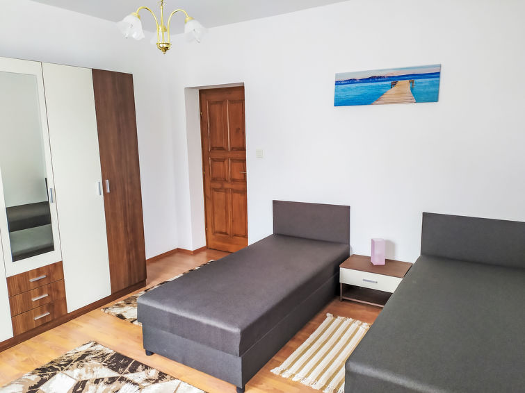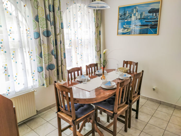 9 rom hus 160 m2. Praktiskt møbler: stue med, satelit-TV. Utgang til terrassen. 2 rom, hvert rom med 2 senger. Åpent kjøkken (4 kokeplater, stekeovn, mikrobølgeovn) med spisebord. Bad/WC, sep. WC. Oppvarmingsalternativ. øverste etasje: spisestue med, satelit-TV. 4 rom, hvert rom med 2 senger. Utgang til balkongen. 1 rom med 2 senger. Åpent kjøkken (4 kokeplater, stekeovn, mikrobølgeovn). 3 dusjer/WC. Terrasse. Terrassemøbler, balkongmøbler. Parkeringsplass (inngjerdet, 6 Biler).