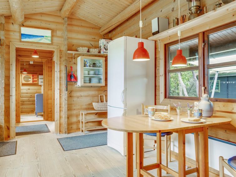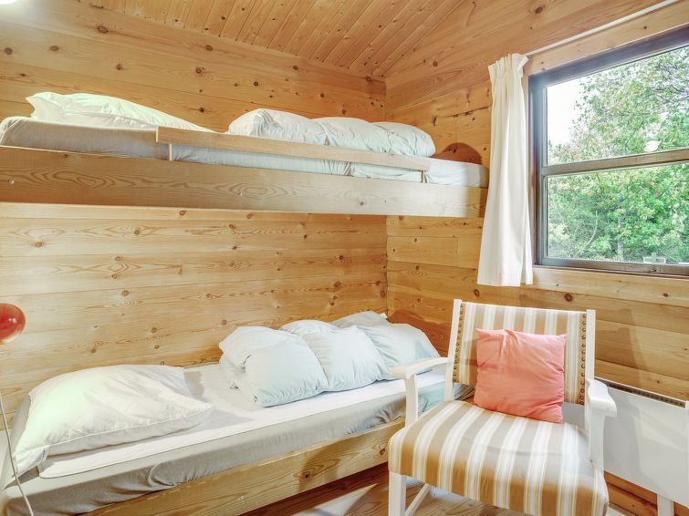 Enmannsbolig, bygget i 1985. 300 m fra sjøen. Privat: uberørt tomt 2'100 m2. Terrasse (40 m2). I huset: vaskemaskin. Parkering ved hbrukt. Daglivarehandel 3.5 km. Golfbane 15 km. Eieren godtar ikke noen ungdomsgrupper.