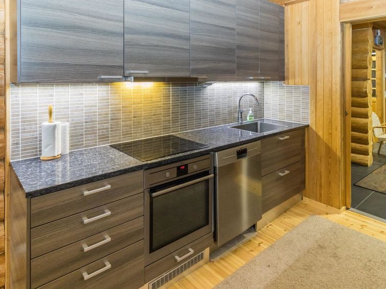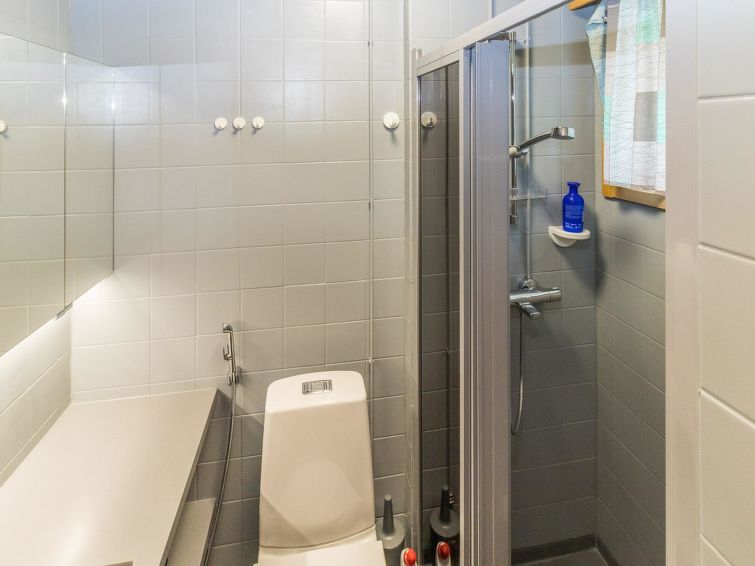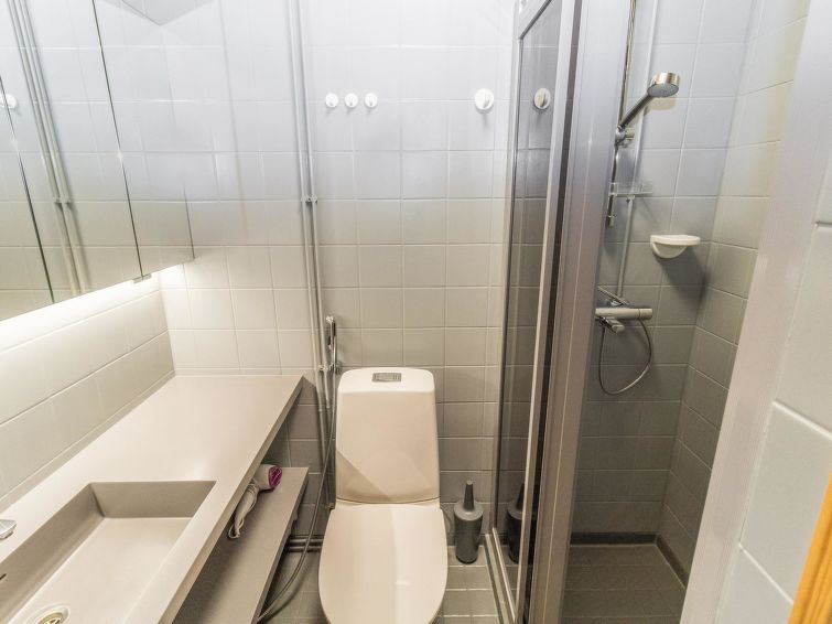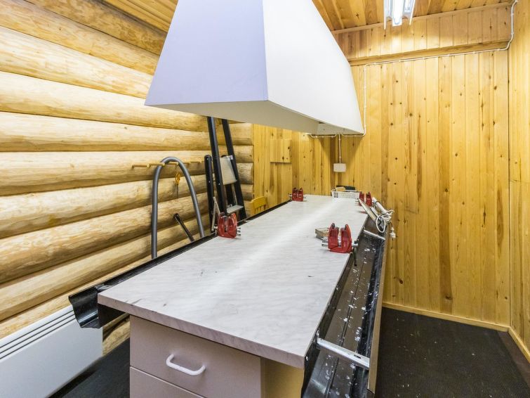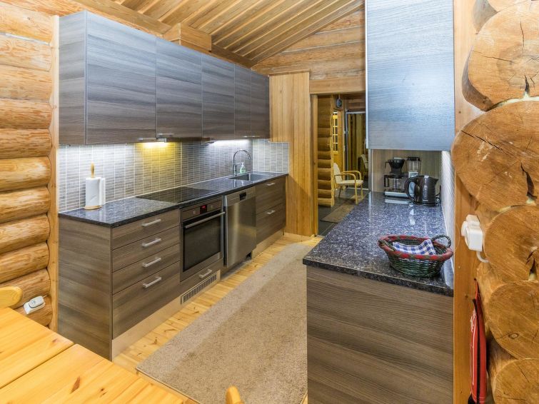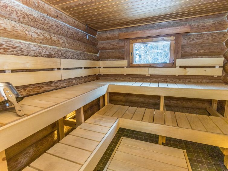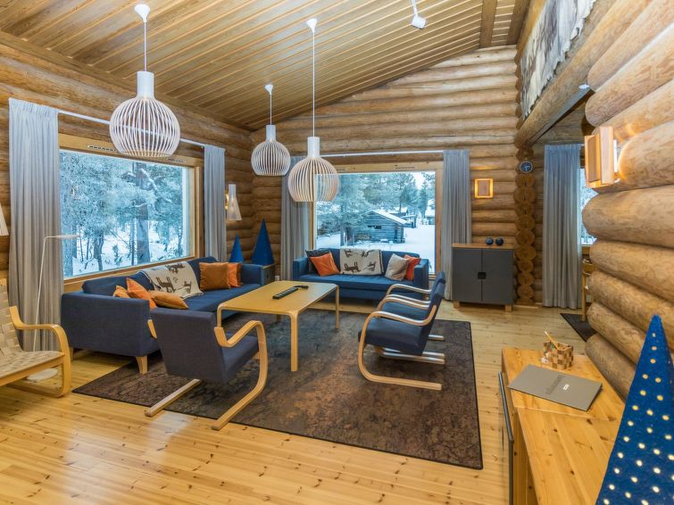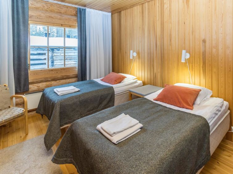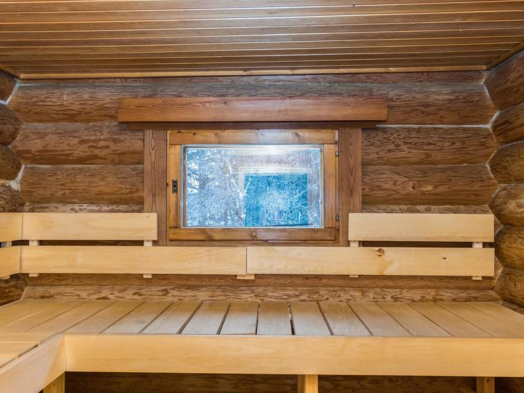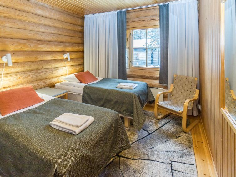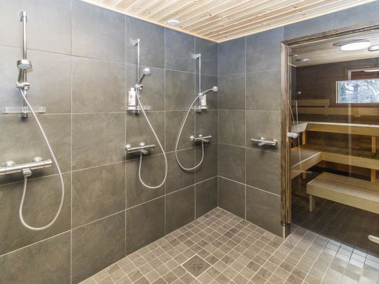 Govadas is a round-log semi-detached villa in the center of Saariselkä, with accommodation of 200 m² on one floor. The facilities include a living room with an atmospheric natural stone fireplace, a dining room with a dining group for 8-10, a separate well-equipped kitchen. Six separate bedrooms, each with separate beds for 2 with shower/toilet, which increases the comfort and privacy of the accommodation. In the common areas there is a sauna, a dressing room, a washroom with 3 showers, as well as a separate toilet and a utility room. Access from the lobby to the common spaces and to the corridor where the bedrooms are located.