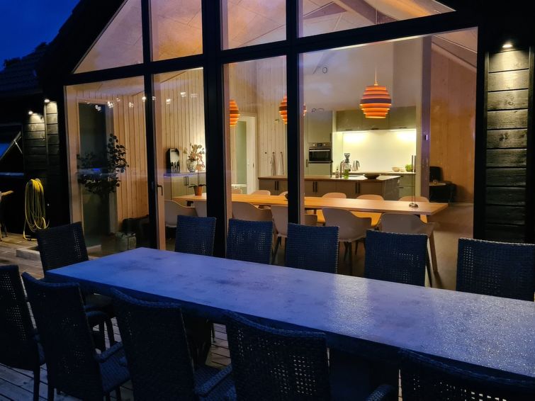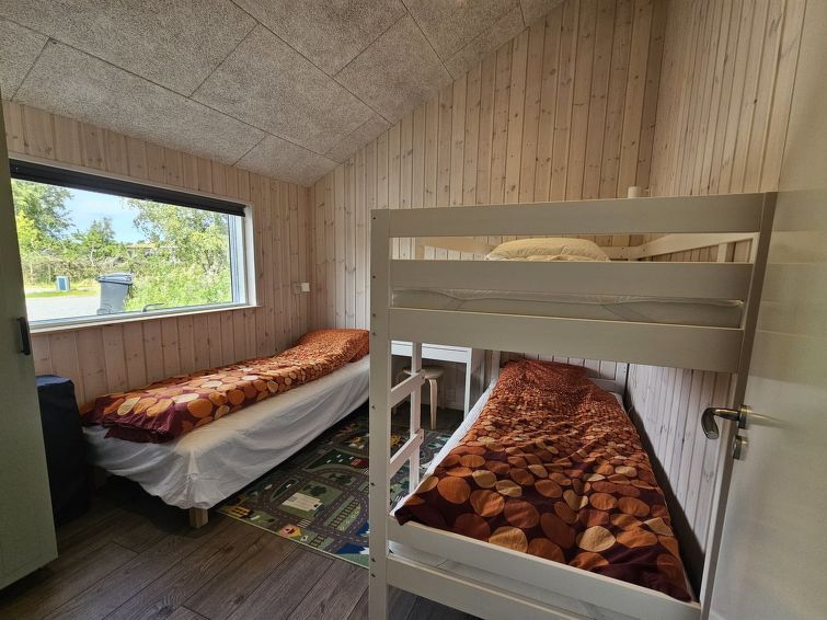 Enmannsbolig, bygget i 2023. 800 m fra sjøen. Privat: uberørt tomt 3'000 m2. Utendørs dusj, grill, lekeplass (rutsjebane, huske). I huset: trikkpolinje, vaskemaskin, tørketrommel. Parkering ved hbrukt. Daglivarehandel 2 km. Eieren godtar ikke noen ungdomsgrupper.