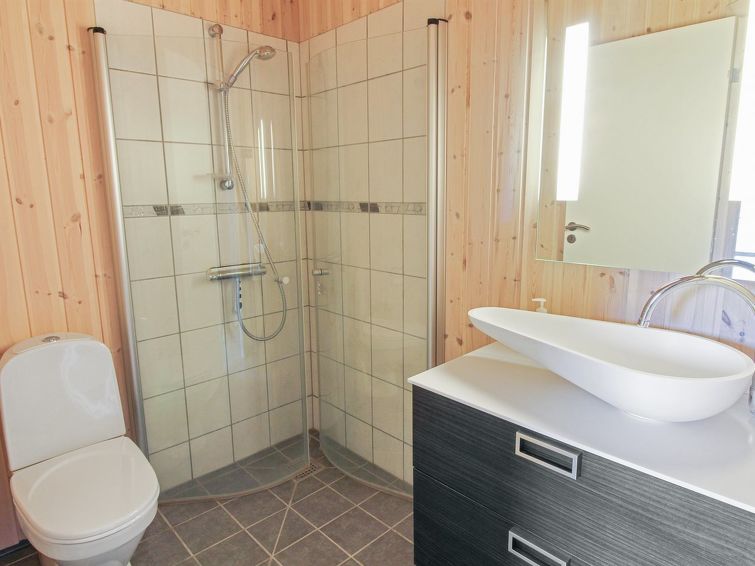 Enmannsbolig, bygget i 2012. 700 m fra sjøen. Privat: uberørt tomt 4'700 m2. Terrasse (50 m2), grill. I huset: badstu, vaskemaskin, tørketrommel. Bilporten. Daglivarehandel 700 m. Eieren godtar ikke noen ungdomsgrupper.