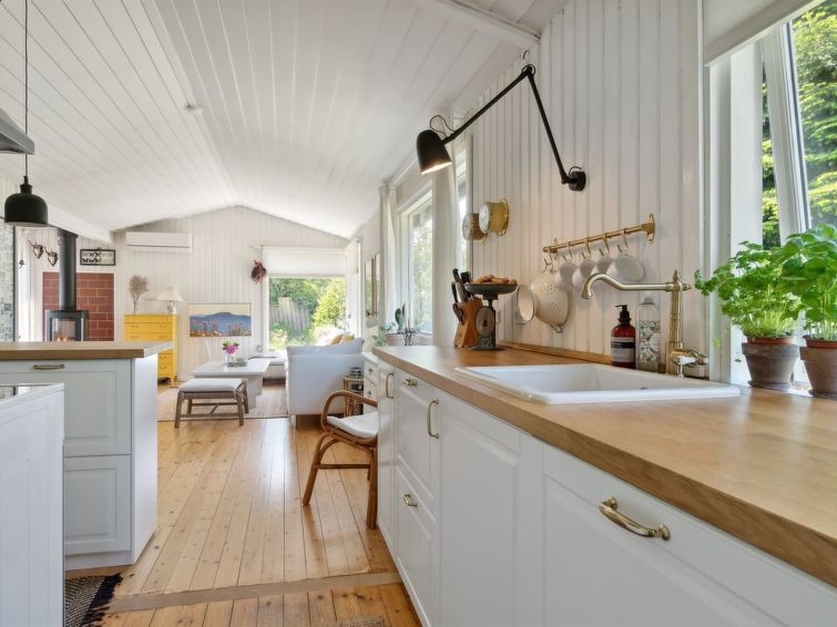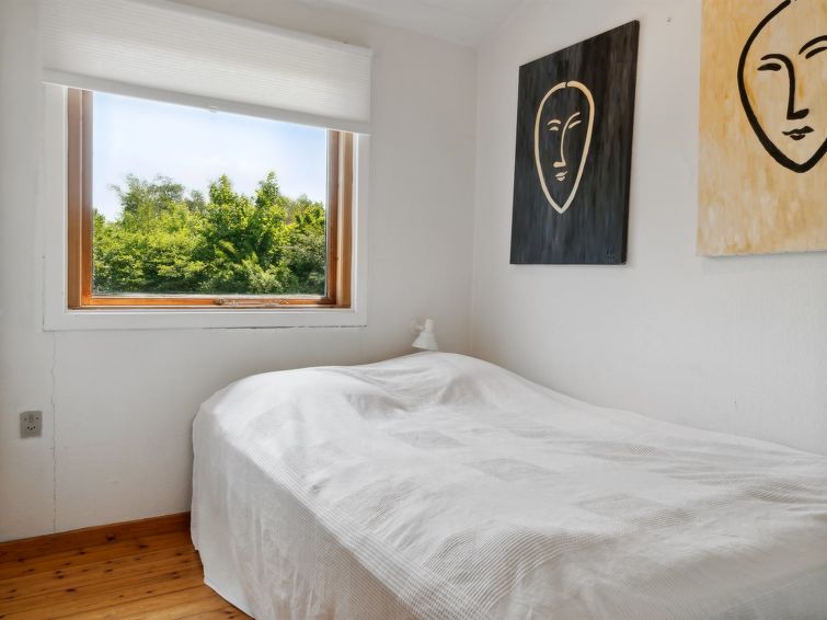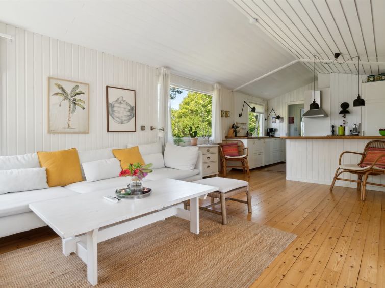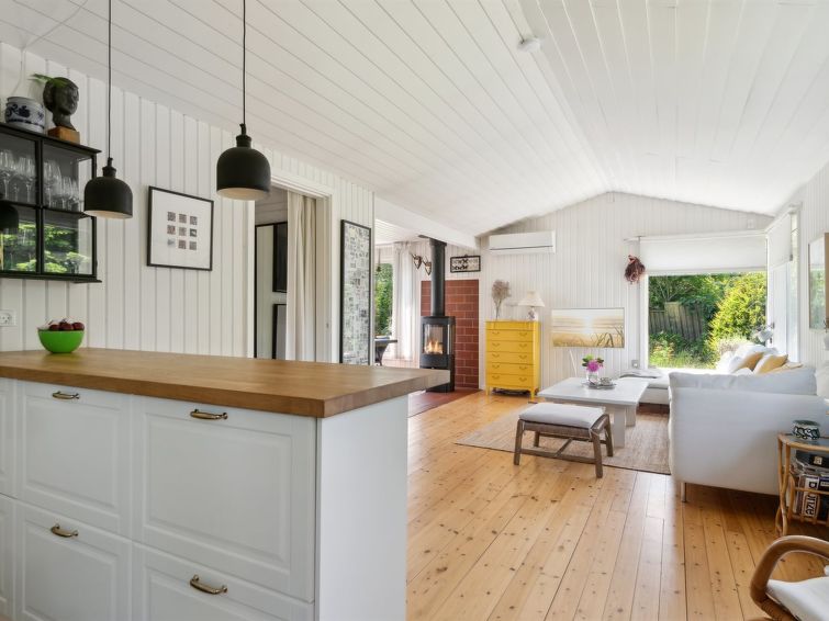 Enmannsbolig, bygget i 1967. 800 m fra sjøen. Privat: tomt 1'200 m2, velholdt hage. Terrasse (40 m2), grill. I huset: vaskemaskin, tørketrommel. Parkering ved hbrukt. Daglivarehandel 1 km. Golfbane 7.4 km. Eieren godtar ikke noen ungdomsgrupper.
